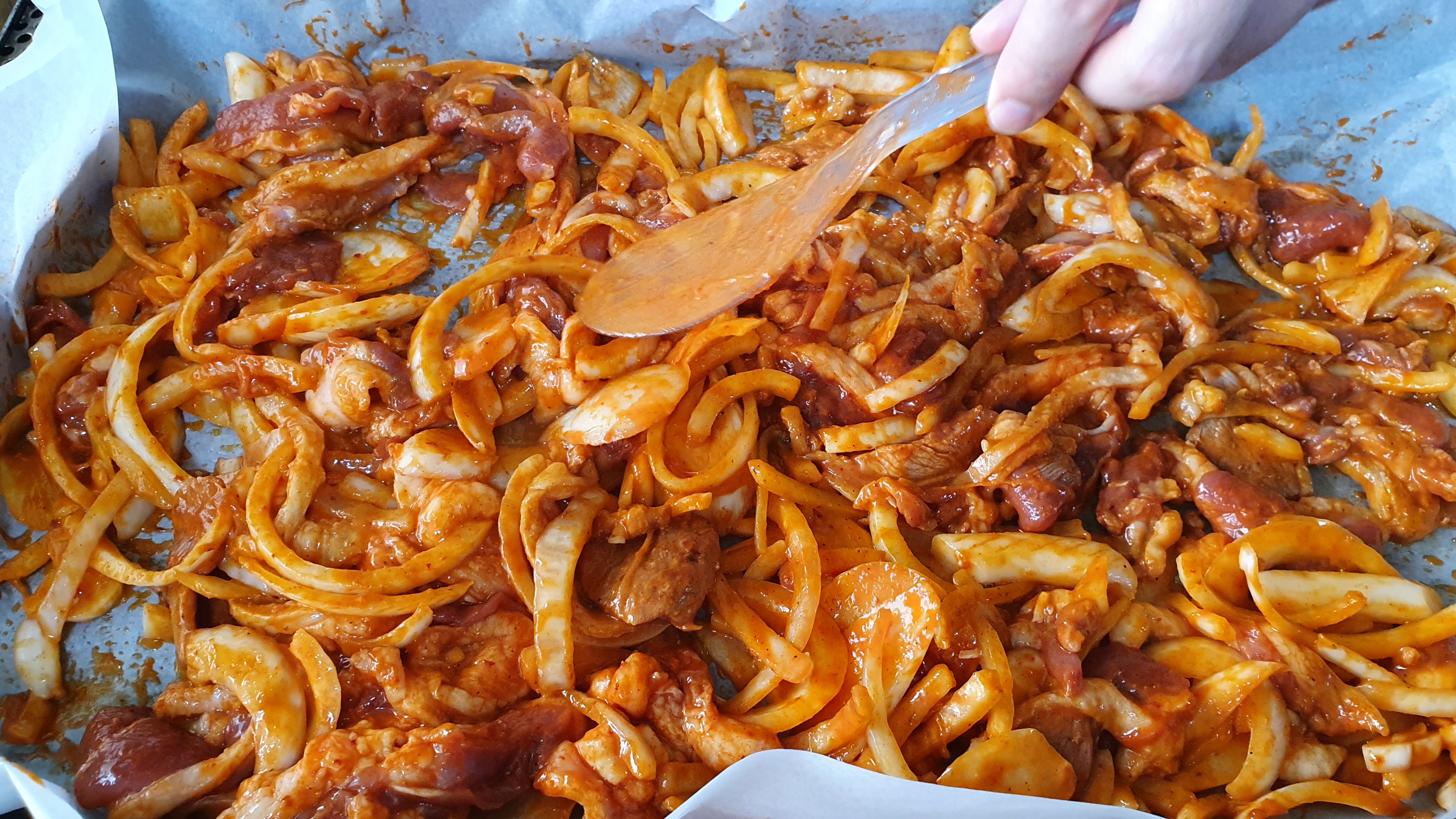 아~! 여기서 잠깐, 밥 양에 따라서 양념 및 오리기름을 좀 덜어내야 한다는 것 잊지 말고 비벼 주세요~^^