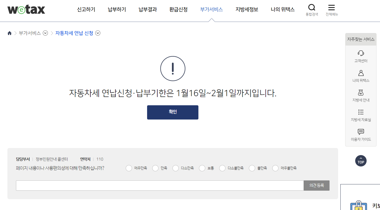 올해 2021년도 자동차 연납신청은 1월 16일부터 진행되기 때문에 아직 오픈이 되지 않은 상황입니다.