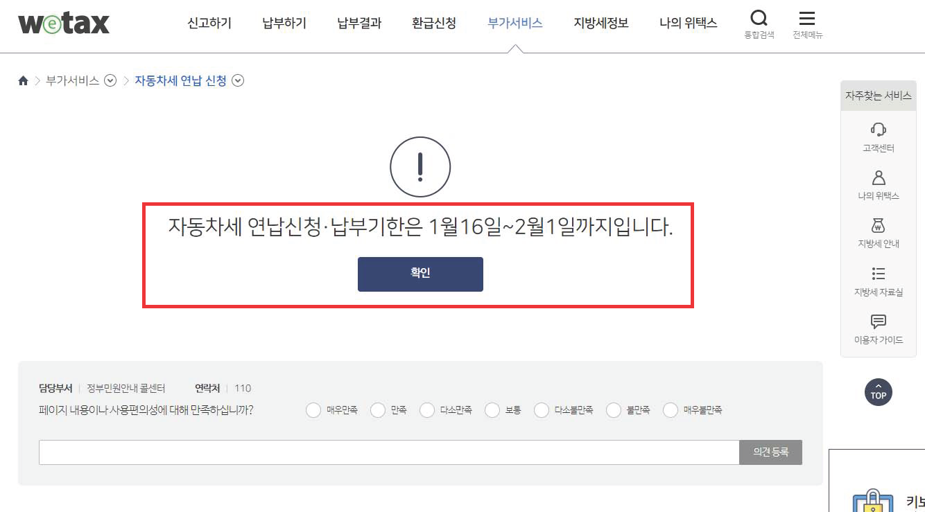 위택스에서 자동차세 연납 신청을 할 수 있는데요~ 보시는 바와 같이 신청할 수 있는 기간 내에서만 신청을 할 수 있다는 점 참고해 주세요.~^^