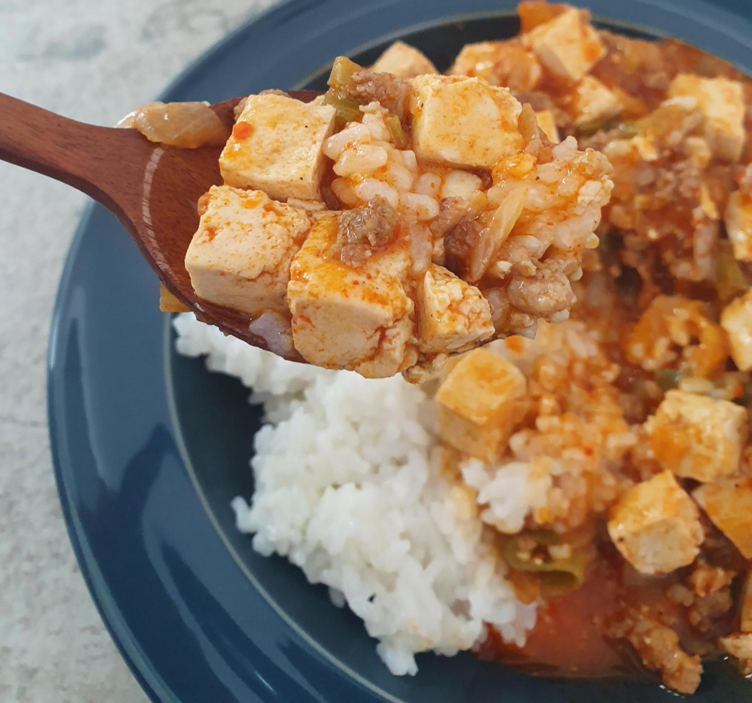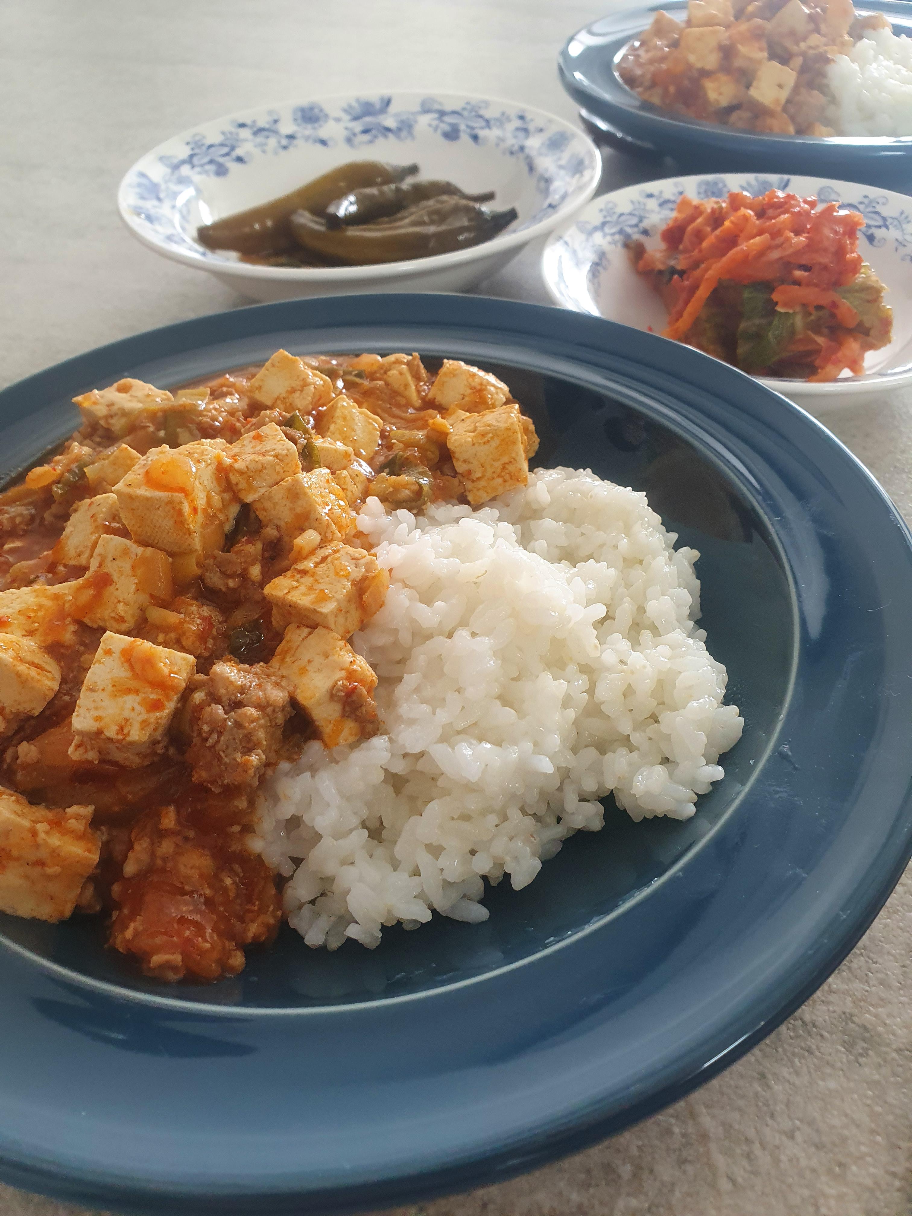 완성된 마파두부밥을 플레이팅 해 보았네요~^^ 마파두부밥은 사실 반찬도 필요 없지만, 간단한 반찬과 함께 먹음직스럽게 플레이팅 해 보았습니다. 아... 빨리 한수저 입에 넣어 보고 싶습니다.