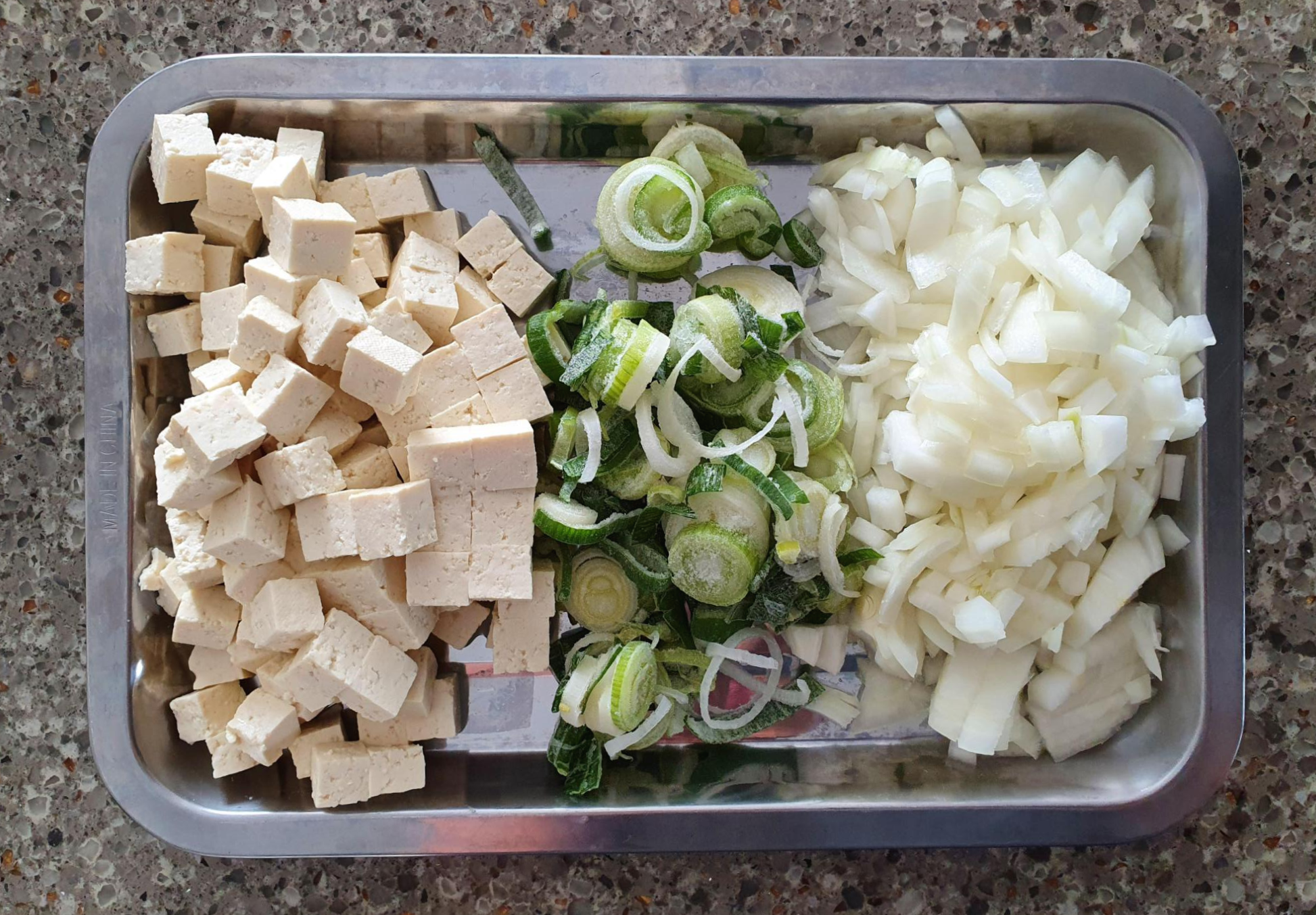 | 재료 준비 두부 반모 / 돼지고기 갈은 것 1컵 / 대파 1/3개 / 양파 반개 / 청양고추 반개 / 물 300ml 양념 준비 된장 반 스푼 / 고추가루 2스푼 / 다진마늘 1스푼 / 굴소스 1스푼 / 진간장 2스푼/ 설탕 반스푼 |