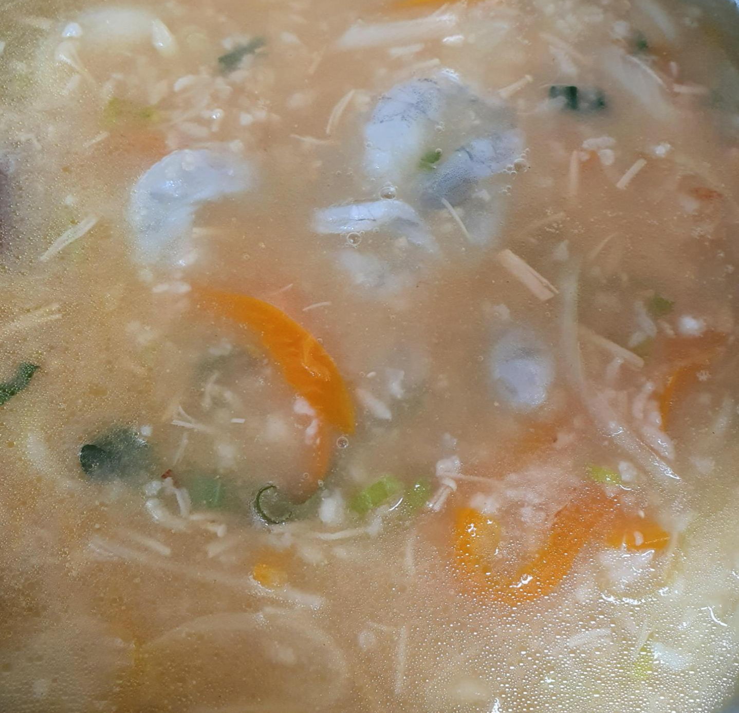 누룽지를 넣어 주셨다면 손질한 새우도 같이 넣어주시고 익혀주시면 되겠습니다.^^