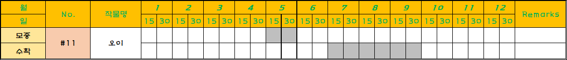 저는 파종을 별도로 진행하지 않을 생각이고, 종묘상에서 오이모종을 준비해서 심을 생각입니다. 오이는 추위를 굉장히 싫어하기 때문에 4월말 쯤 부터 모종을 준비해서 심어주시면 겠습니다.