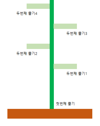 어미줄기(첫번째줄기)에서 약 6 마디 정도 까지 곁순을 제거하면서 관리하시고 7마디부터 아들줄기(두번째줄기)를 키워 나가 주세요~!