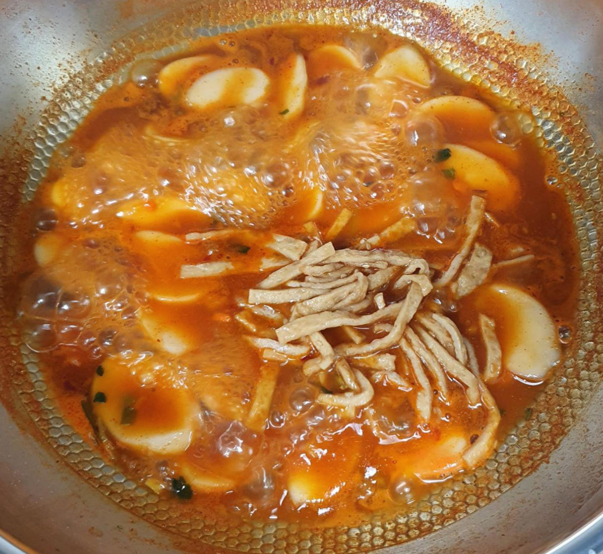 떡을 하나 먹어보시고, 떡이 부들부들 해 졌다~! 그때 남은 물양에 따라 라면스프를 넣어 주셔야 합니다.
