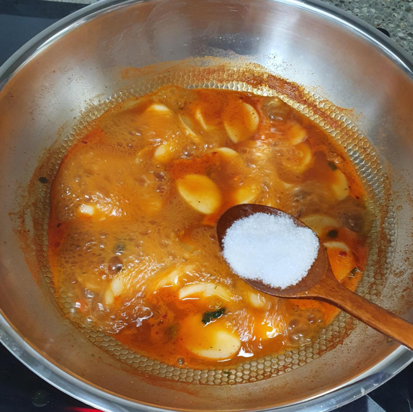 저는 단맛을 위해 설탕을 넣어 주었습니다. ~ 설탕의 양은 라볶이 및 떡볶이에 좋아하는 정도의 단맛이 다들 다르신 것 같아요.