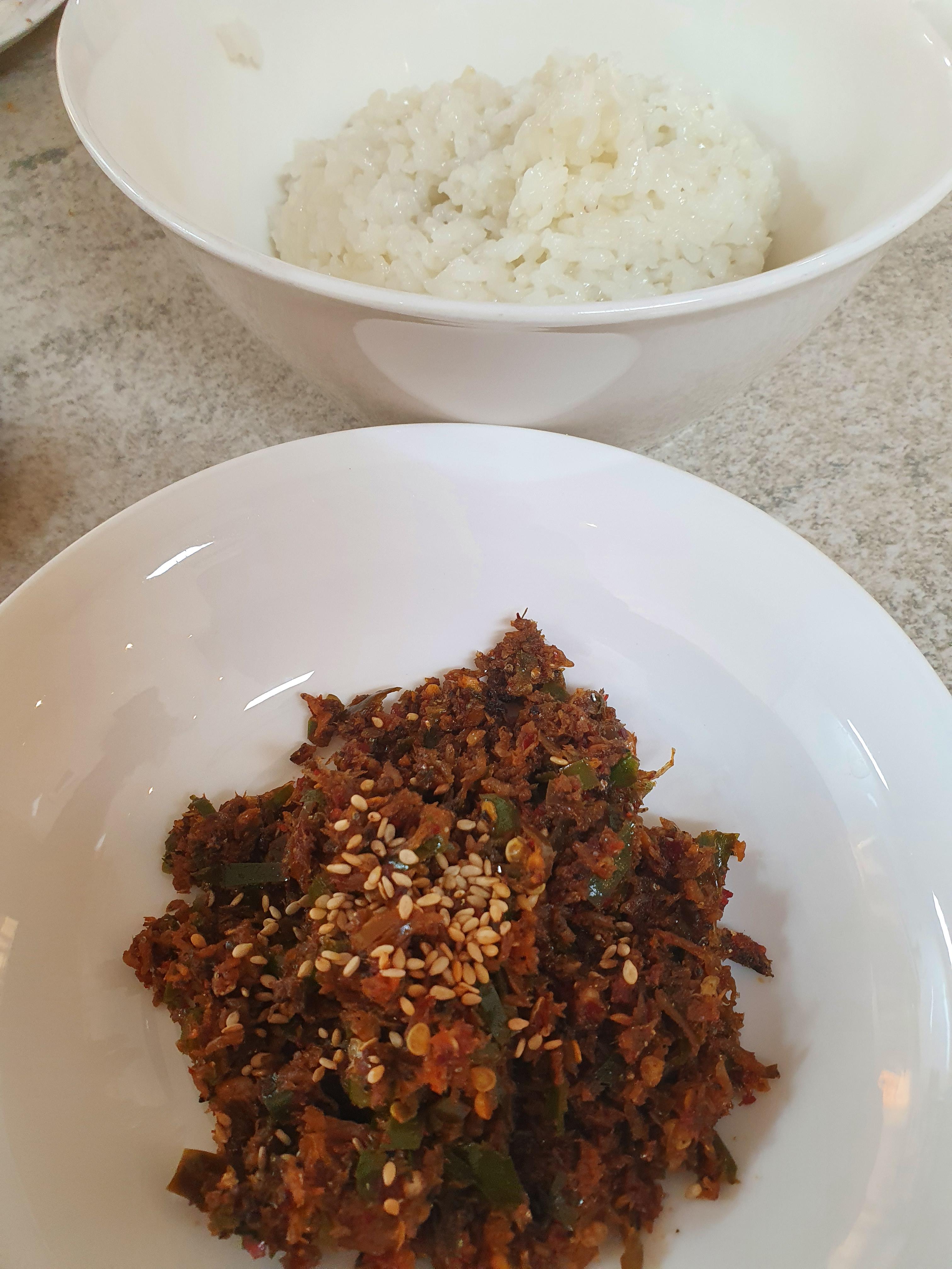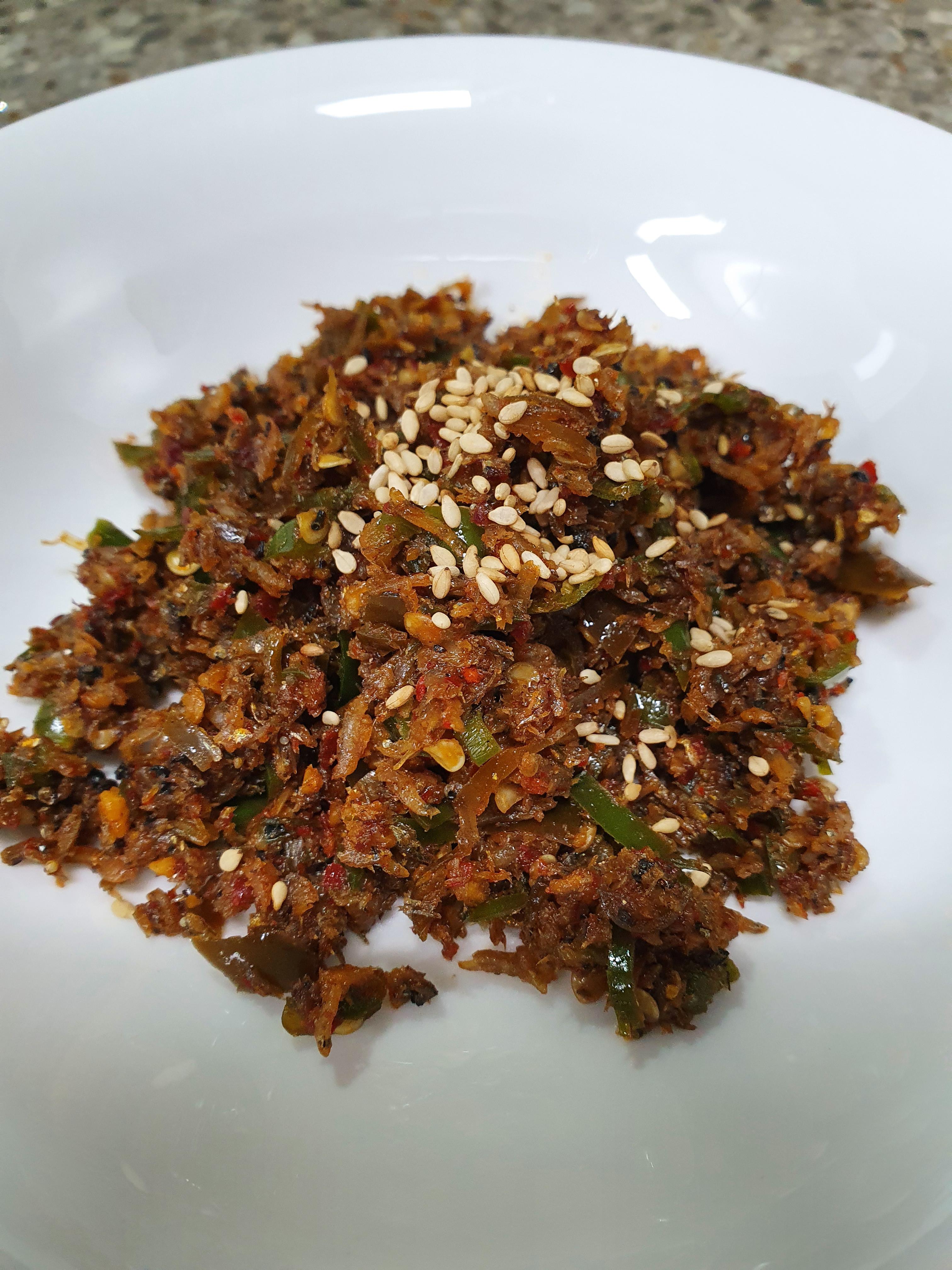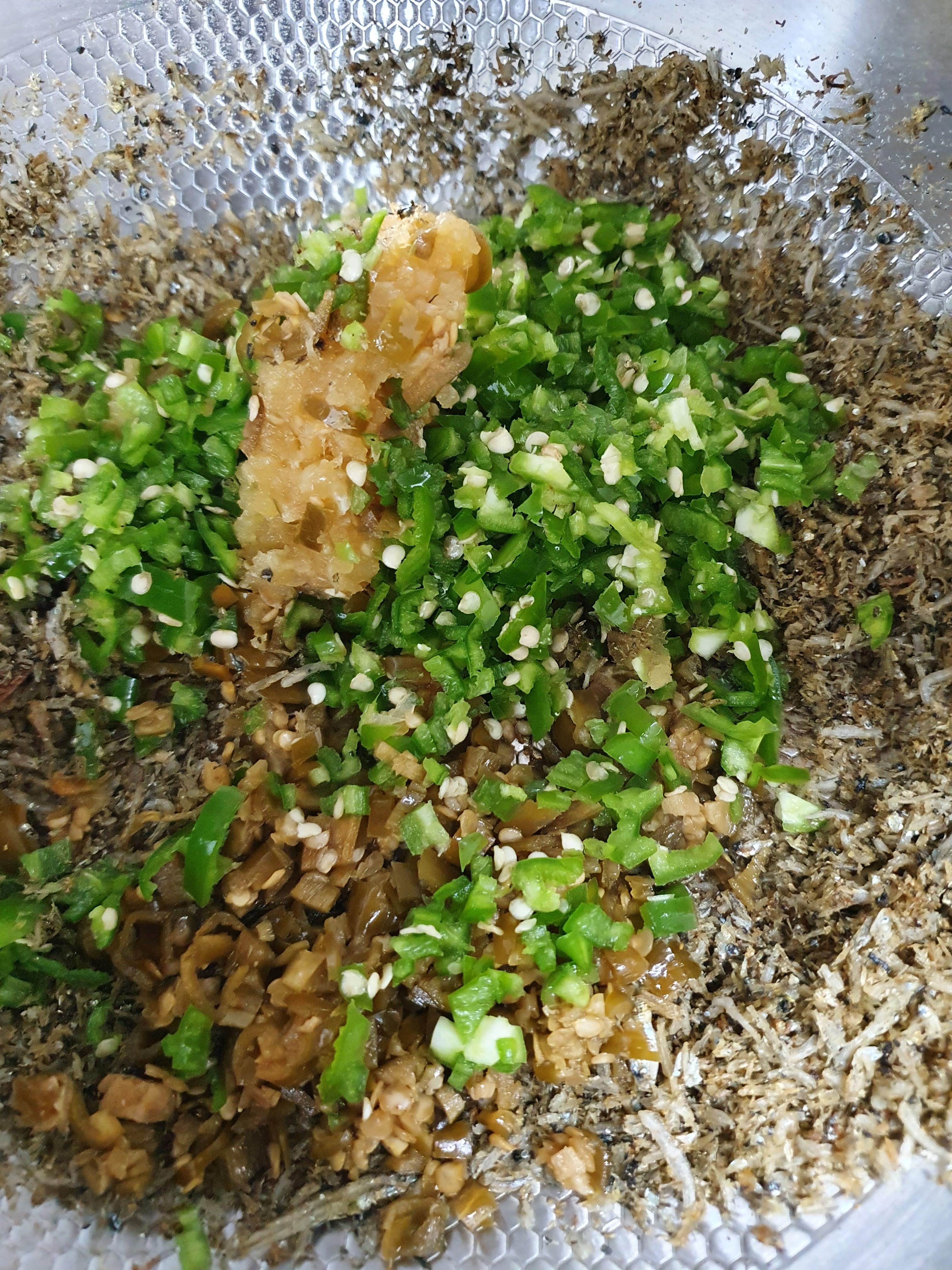 통깨로 마무리하여 청양고추 멸치 다대기 플레이팅을 완성했네요. 아~ 당장이라도 하얀 밥 준비 준비~!^^