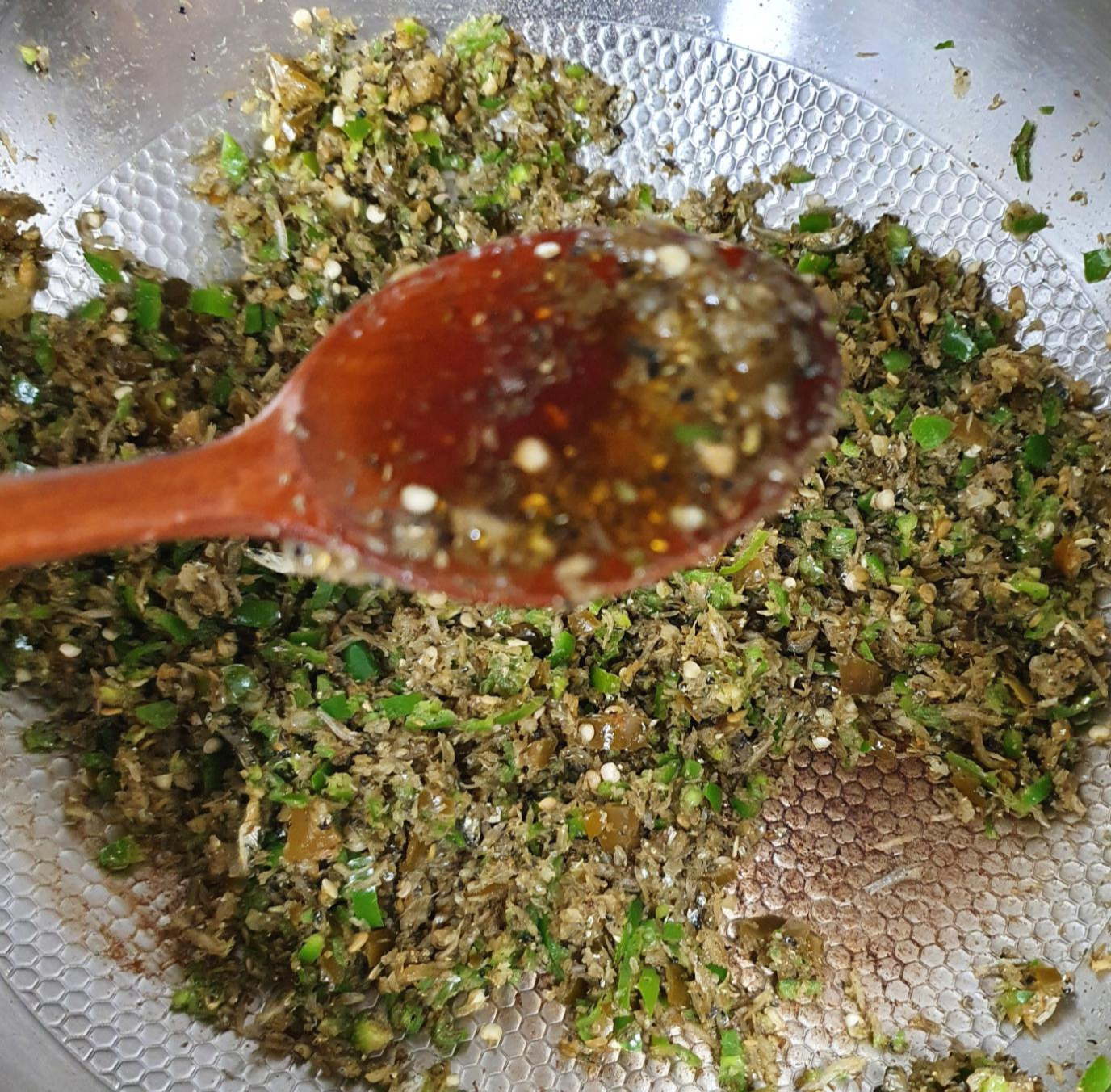 멸치를 많이 넣어서 추가적으로 멸치액젓을 넣지 않았어요. 멸치의 양을 줄이고 멸치액젓으로 감칠맛을 더해도 맛있답니다. 참고해 주세요.~