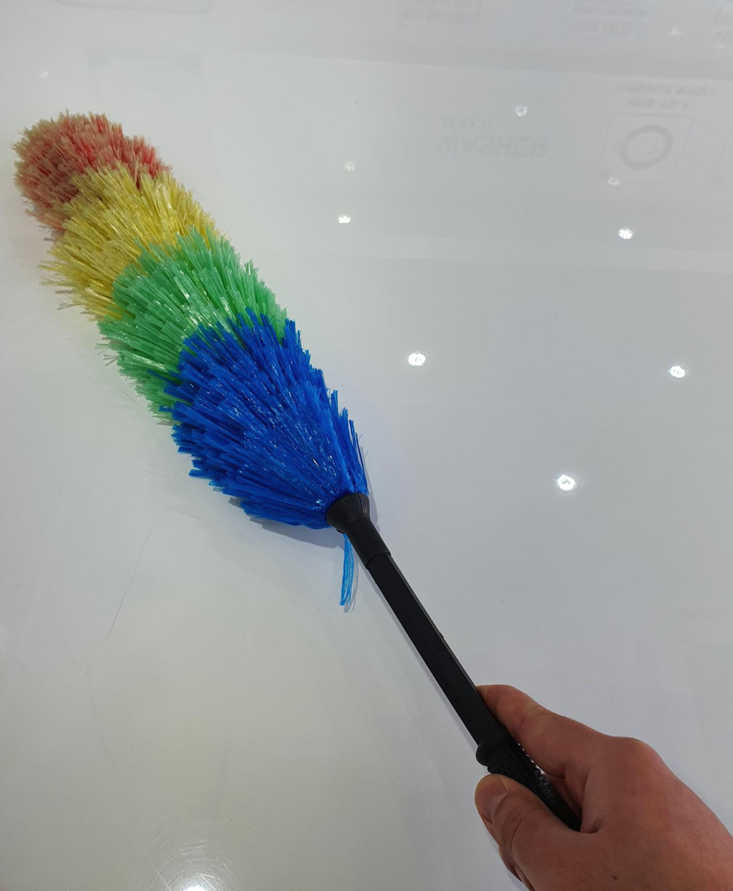 다른 방문객이 사용하다 떨어진 먼지를 제거하고 사용하라고 먼지 떨이개 및 세정제가 준비되어 있습니다. 활용하셔서 테이블을 깨끗이 한 다음 건조된 빨래를 놓아주시면 좋겠네요~