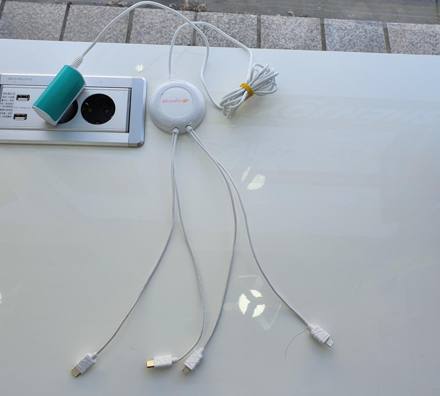 다양한 기종을 충전할 수 있도록 케이블이 준비되어있고, 특별한 케이블이 필요하다면 콘센트에 연결해서 사용을 할 수 있도록 준비되어 있네요~^^