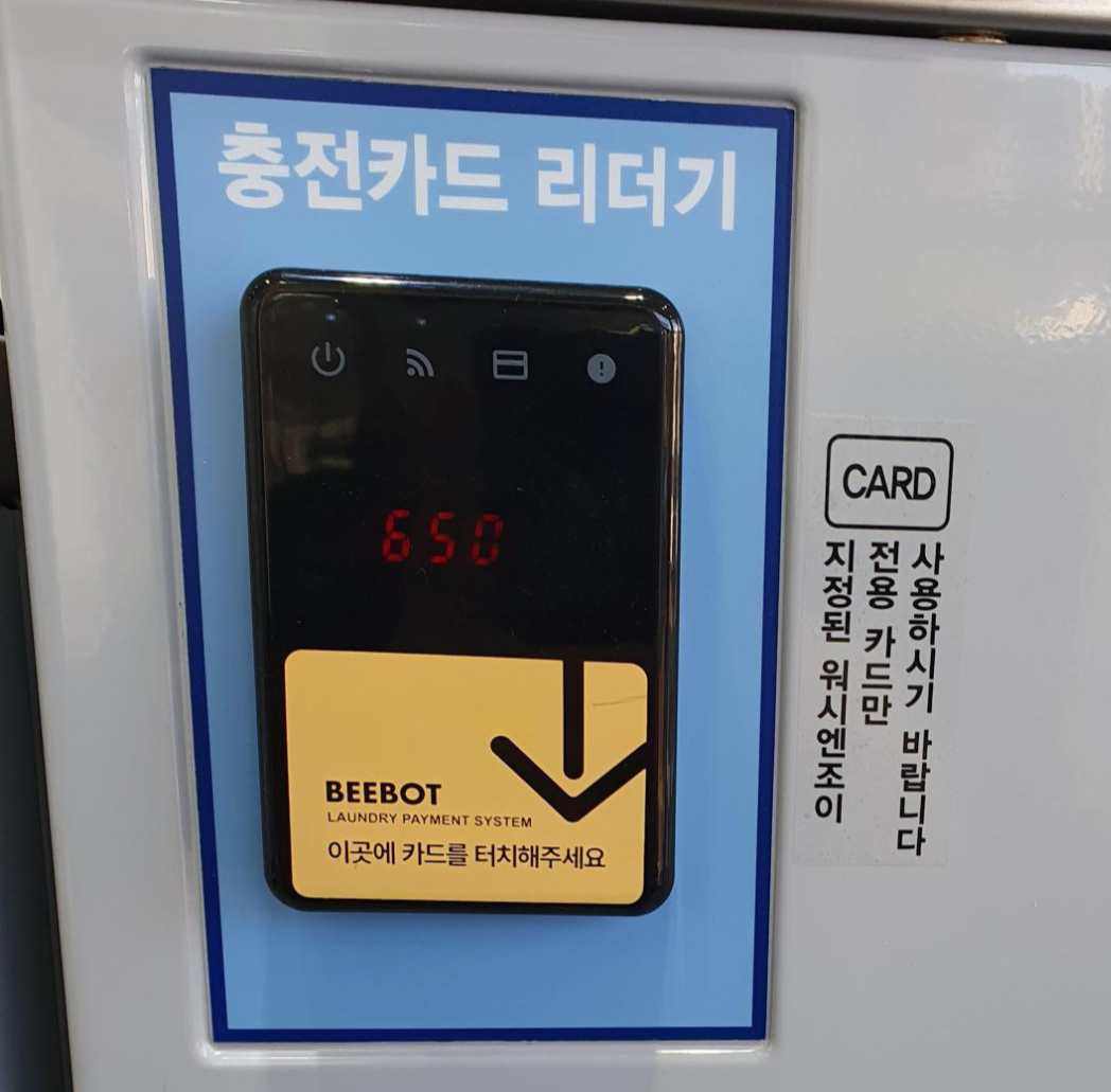 세탁을 진행해 볼게요~! 돌릴 수 있는 세탁기 ~! 전 28KG 용량 세탁기가 되겠죠? 자리가 난다면 가져온 세탁물을 세탁기 안에 넣어 주신 후, 카드를 찍어 주면 됩니다.