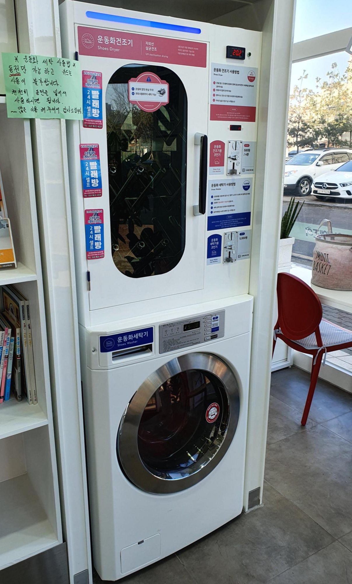 (위칸은 운동화 건조기 / 아래칸은 운동화 세탁기)
