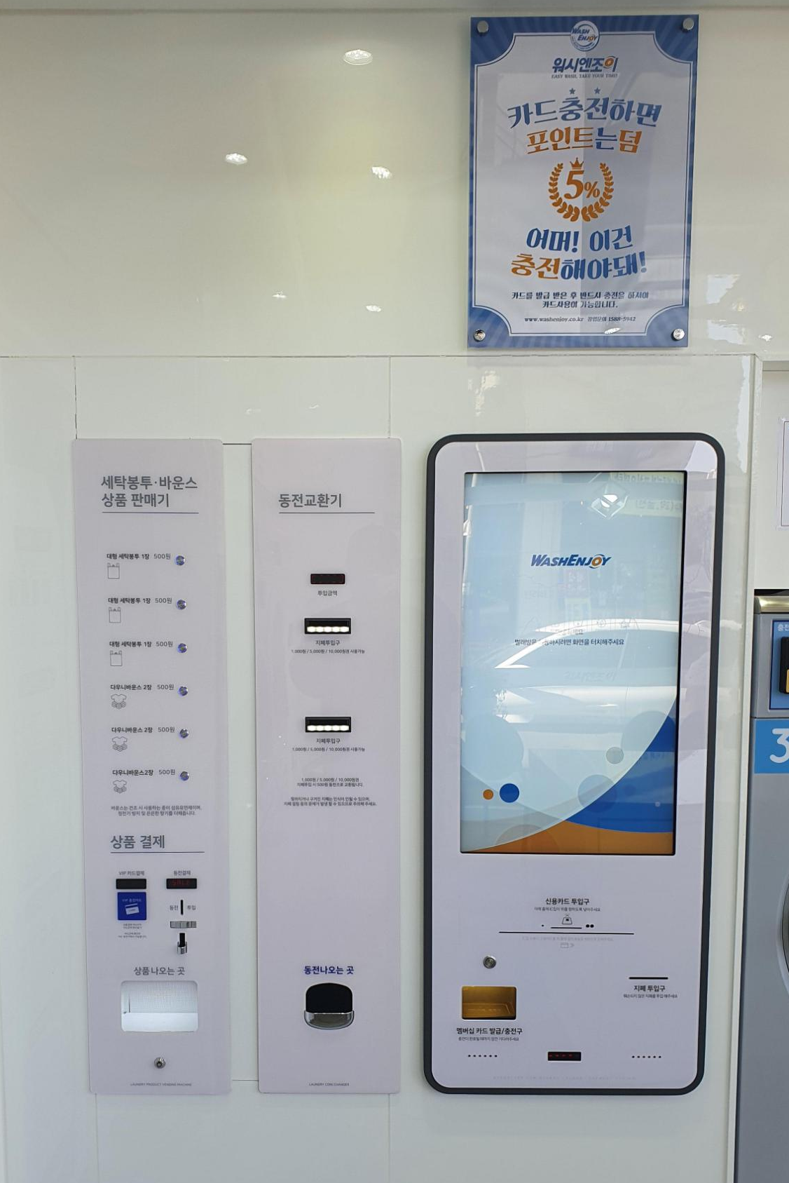 자. ~! 이제 이용을 진행해 봐야 하는데요. 워시앤조이 셀프빨래방 김포장기점은 동전도 사용이 가능하고, 전용 회원카드를 발급해서 사용할 수 있는 방법 2가지가 있습니다.