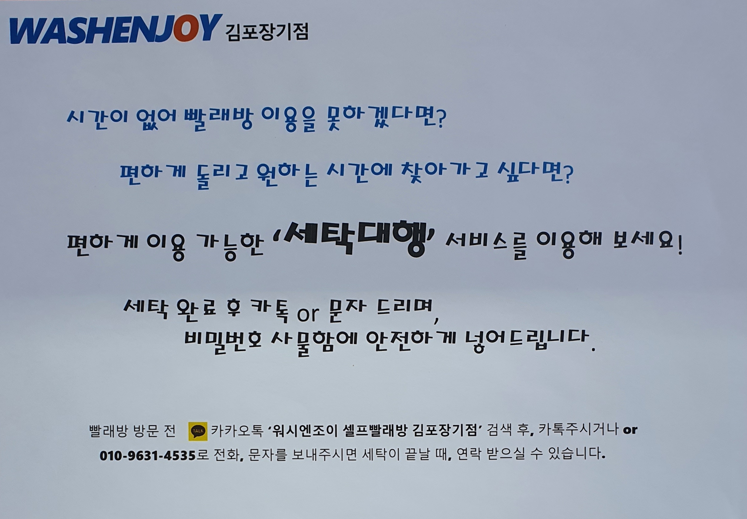 와...!!! 엄청난 서비스가 있습니다. 세탁을 하고 나서 바로 찾아가지 못하게 되면 세탁대행 서비스를 통해서 사물함에 보관해 주시는 서비스까지 하고 있네요~?^^
