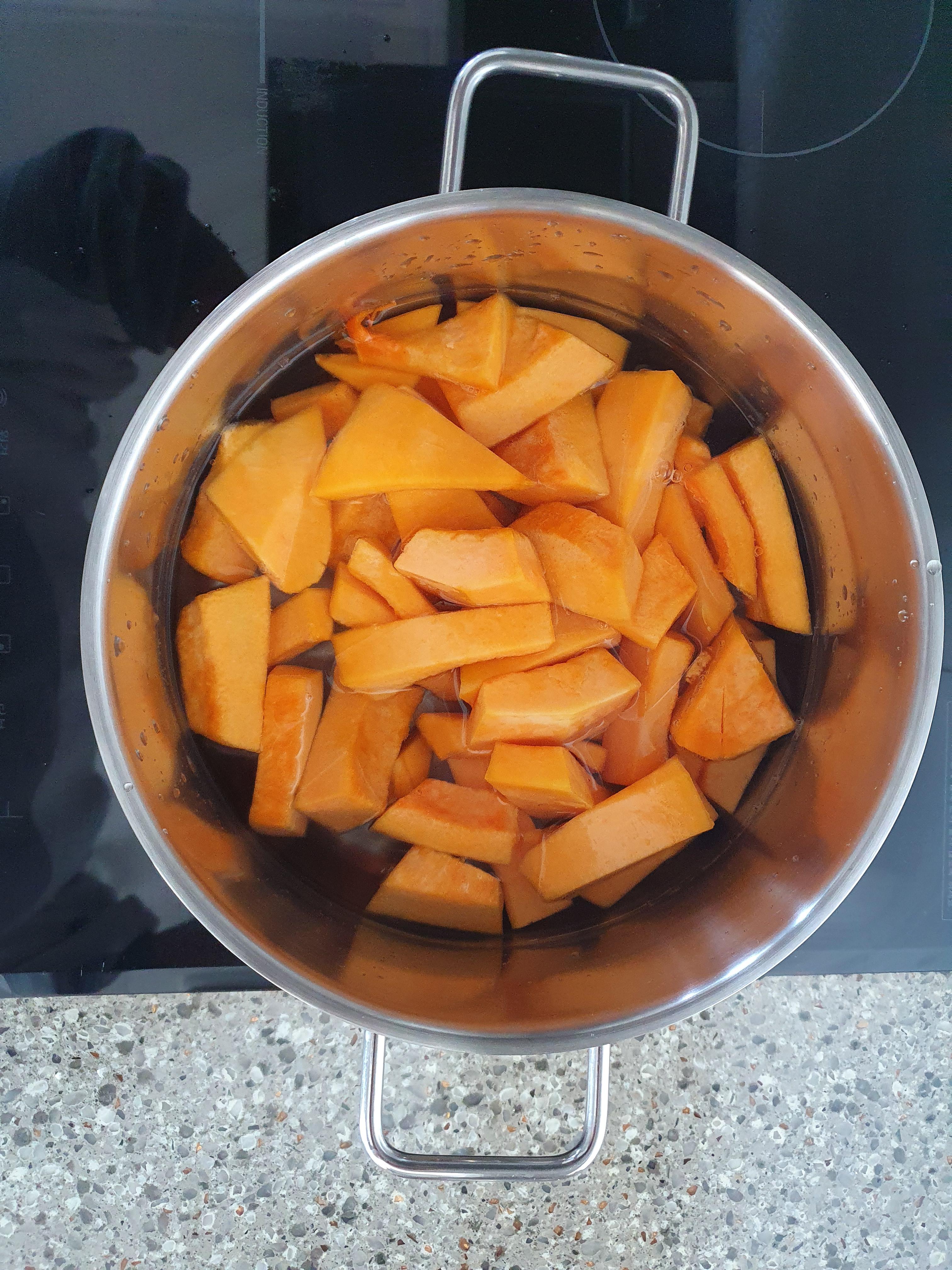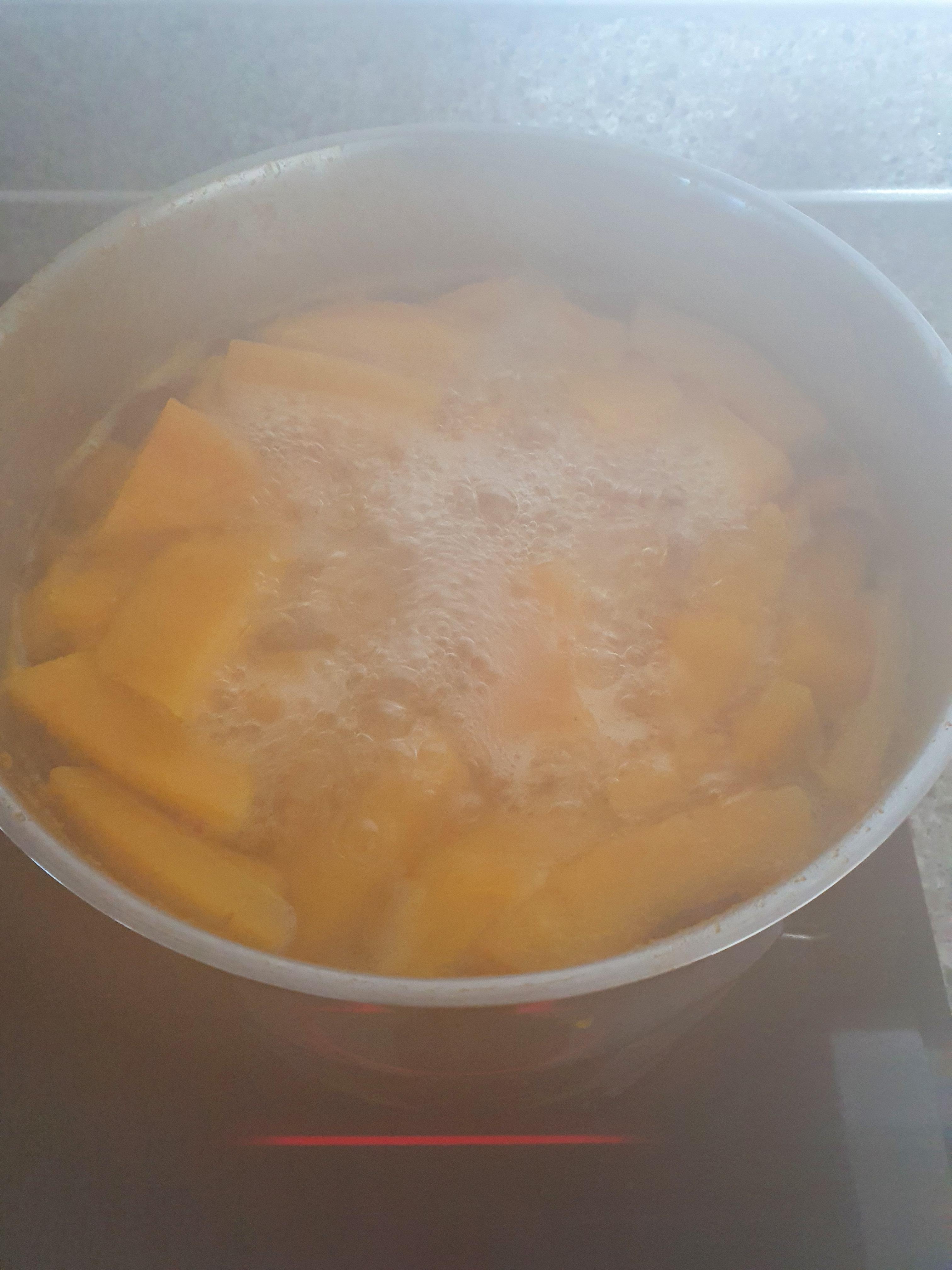 자 다 삶아진 호박을 믹서기에 갈아야 할