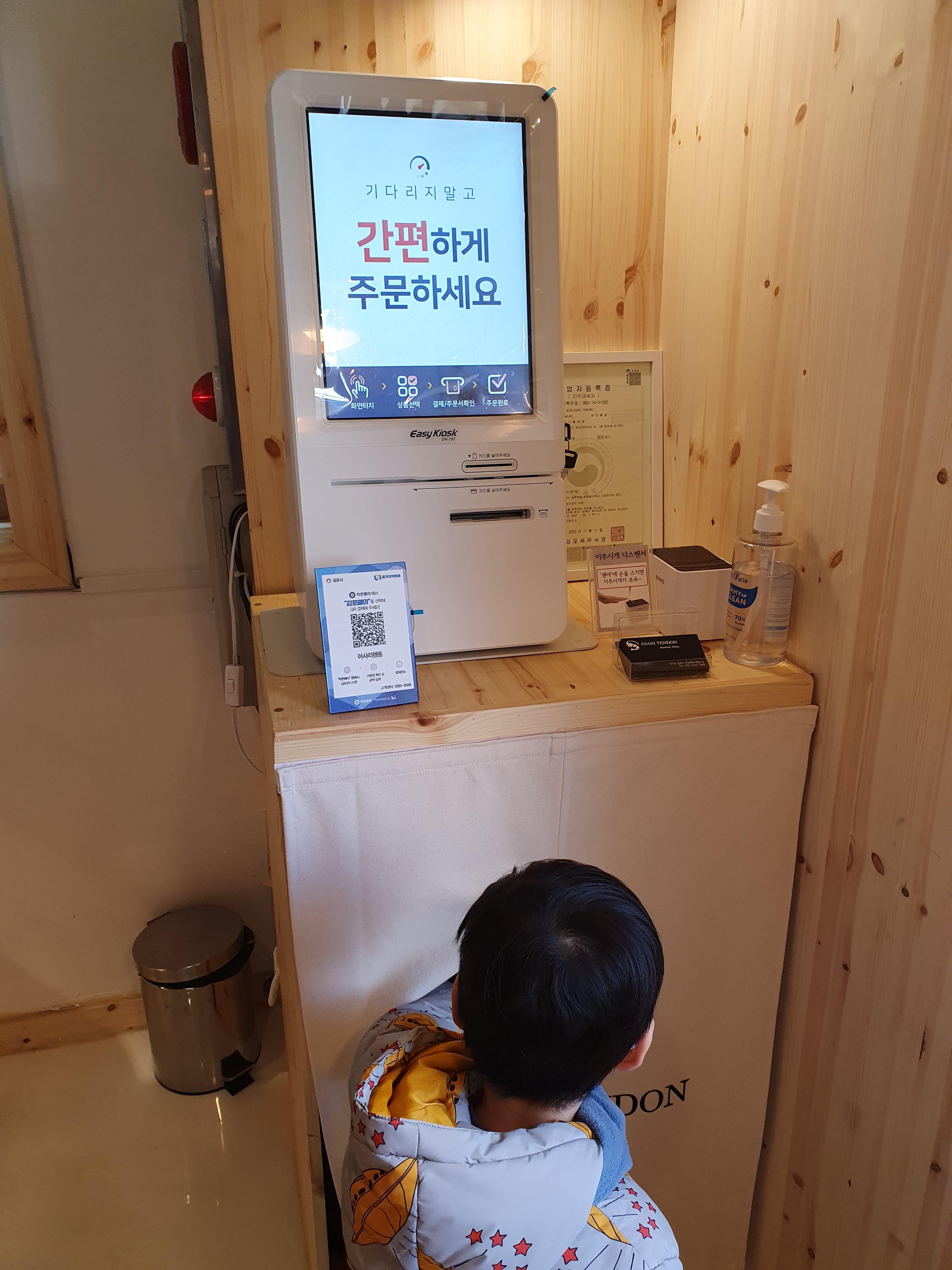 입구에 들어서자마자 방문자 등록을 할 수 있게 준비되어있습니다. QR코드 찍어서 체크인할 수 있는데, 우리 아이가 카메라를 보면서 사진 찍자고 해서 ^^ 순수한 우리 아이의 모습 귀엽네요~