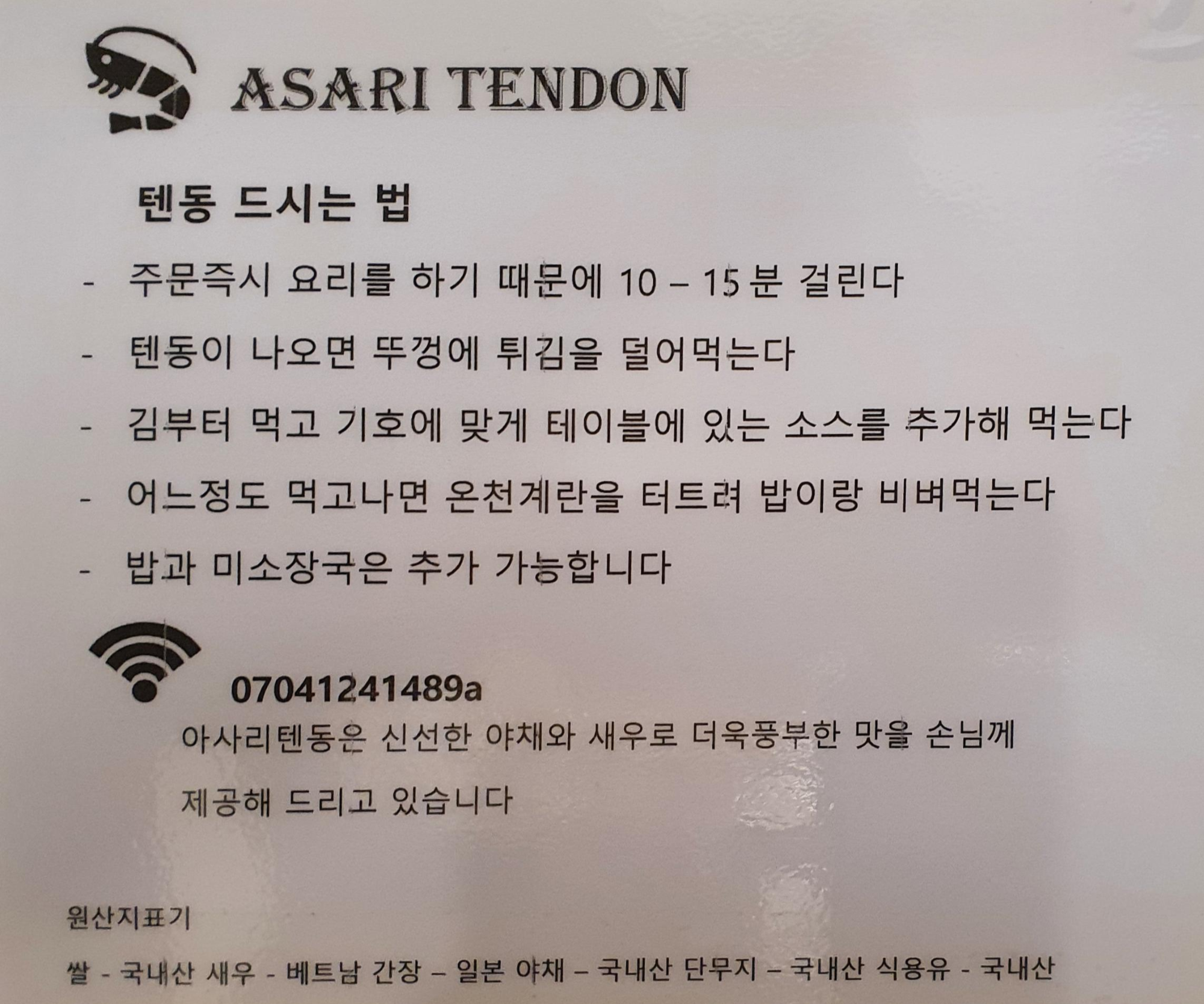 또한, 기다리시면서 아사리 텐동을 처음 접하시는 분들을 위해 먹는 방법을 알려주시니, 머릿속에 쏙쏙 넣어 맛있게 먹을 준비 해 보아야겠어요~!^^
