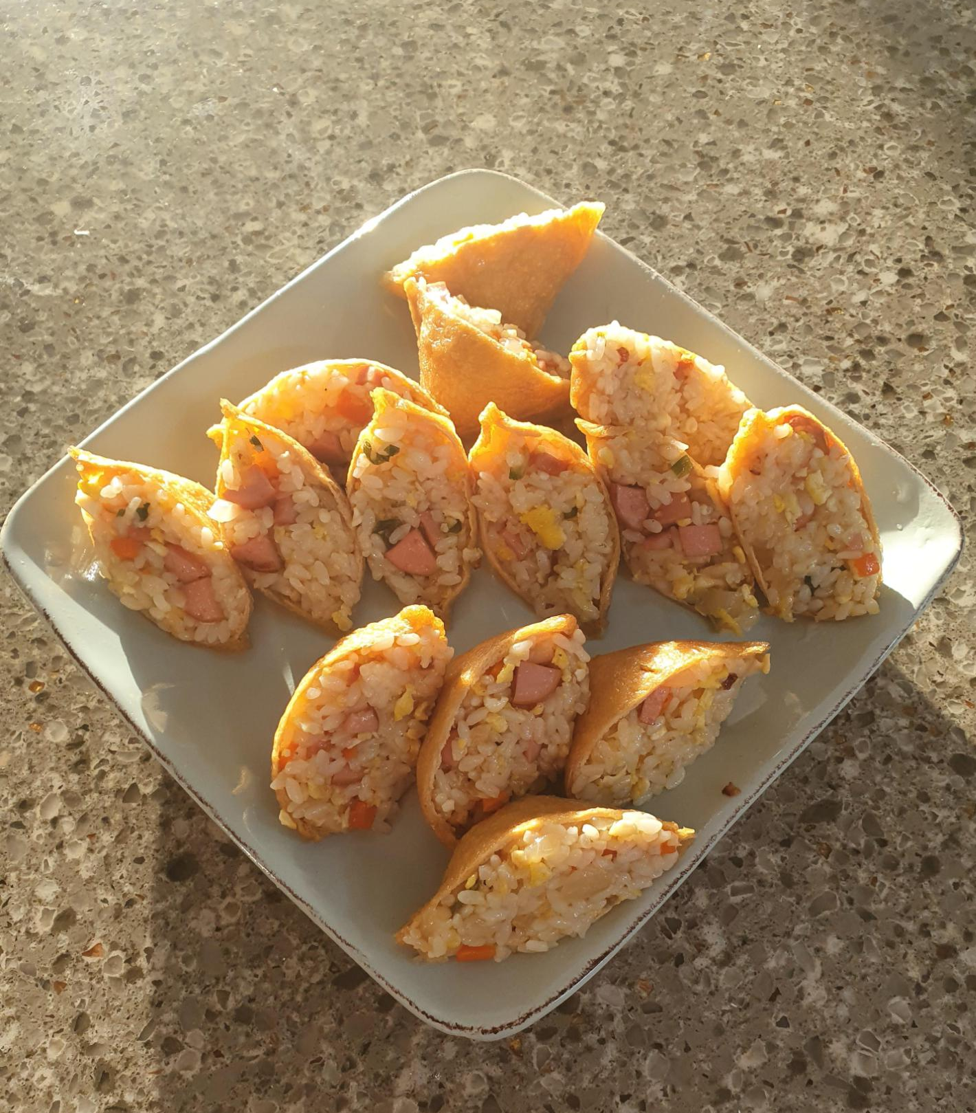 초의 향이 싹 돌면서 볶음밥과 잘 어울리네요. 정말 정말 정말 맛있습니다. 왜 유부를 조금만 구매해서 이렇게 양을 조금만 만들었는지... 후회가 될 지경이네요. ~^^ 다음에는 조금 더 많이 해 먹어야겠습니다.