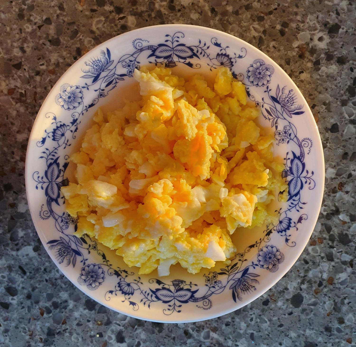 계란 2개는 별도로 스크램블로 만들어 준비를 해주세요. 볶음밥을 만드는 과정에서 만들면 복잡해 지기 때문에 먼저 만들어 준비해주시고, 시기에 맞춰 넣어주시는 것을 추천합니다.^^
