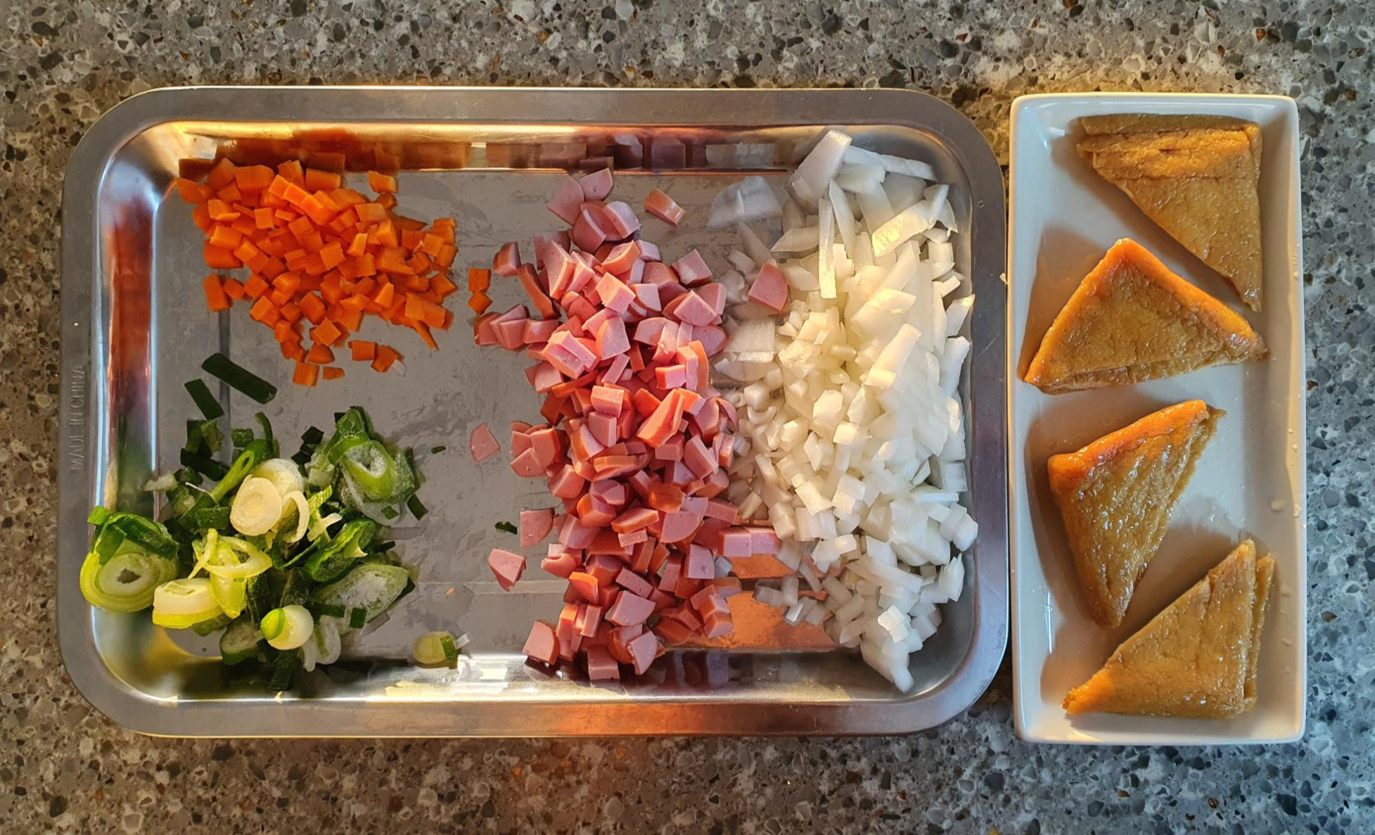 유부초밥을 만들 때 유부 내 들어갈 볶음밥을 우선적으로 만들어야 합니다. 집에 있는 원하는 재료를 넣어 만들어도 좋습니다. 저는 집에 있는 재료를 활용해서 만들 생각이에요.
