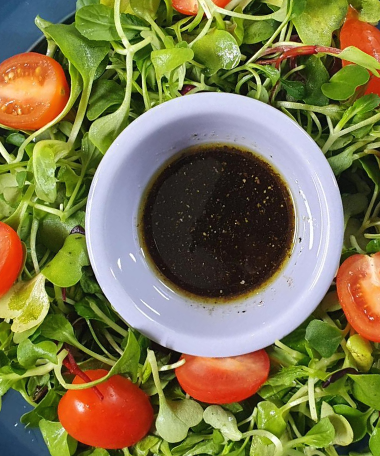 올리브오일 발사믹 소스의 기초입니다. 올리브 오일 2스푼을 추가해 주세요. 올리브 오일 자체만 먹어도 맛있는데..