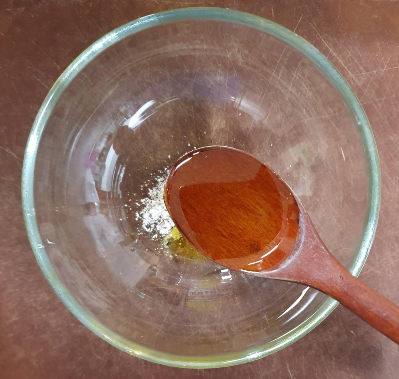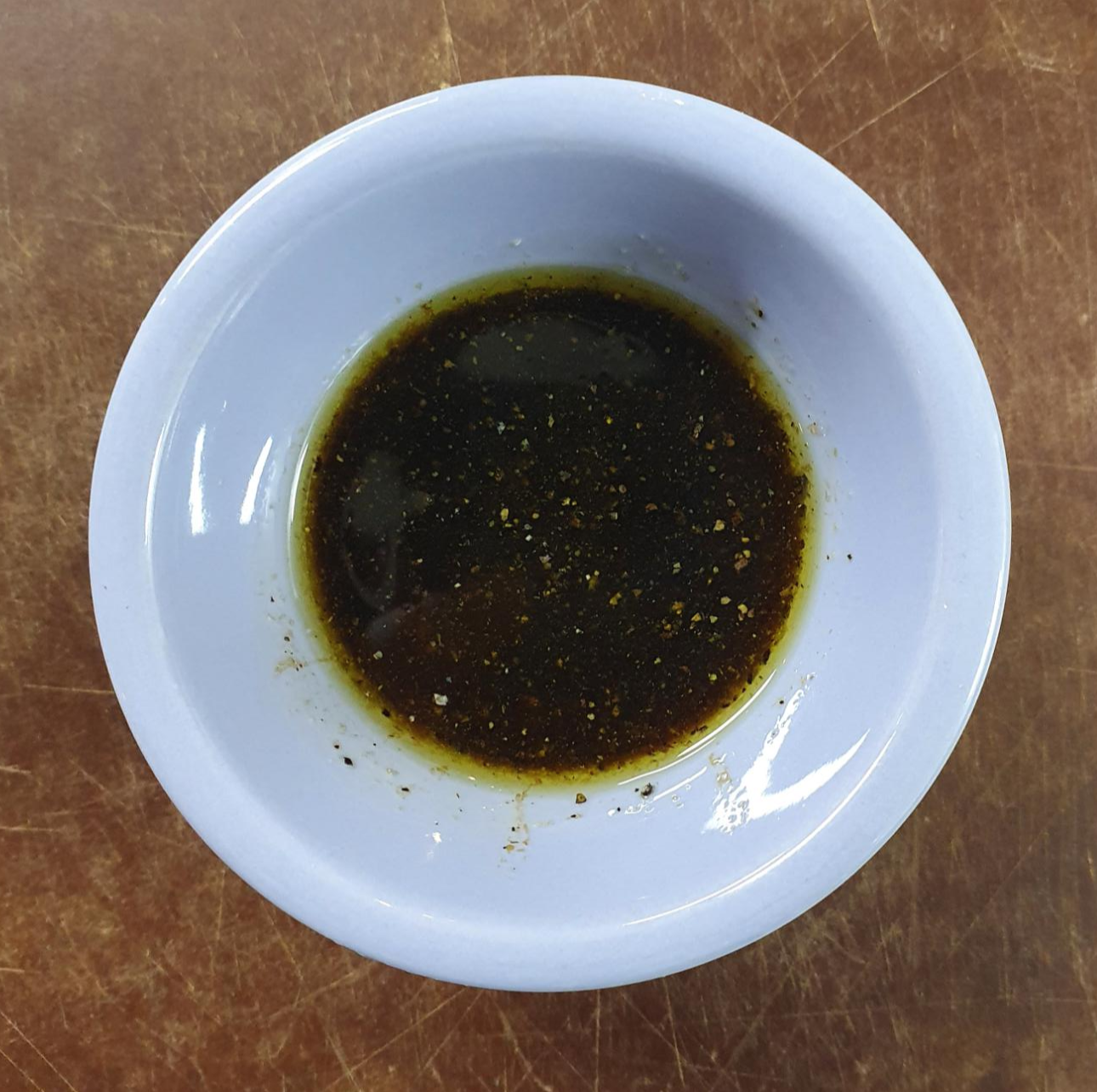 올리브오일 발사믹 소스의 기초입니다. 올리브 오일 2스푼을 추가해 주세요. 올리브 오일 자체만 먹어도 맛있는데..