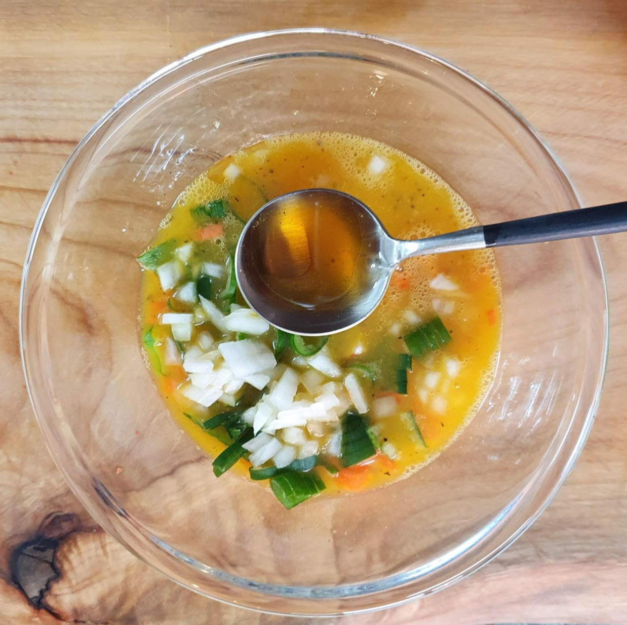 재료준비 계란 3개 / 대파(1/3뿌리) / 당근(1/6개) / 양파(1/8개) / 게맛살 1줄 / 물 (계란물 만들었을 시 같은 양의 물을 준비) 양념 준비 들기름 반스푼 / 참기름 반스푼 / 까나리액젓 반스푼 / 소금 및 후추 2꼬집씩 |
