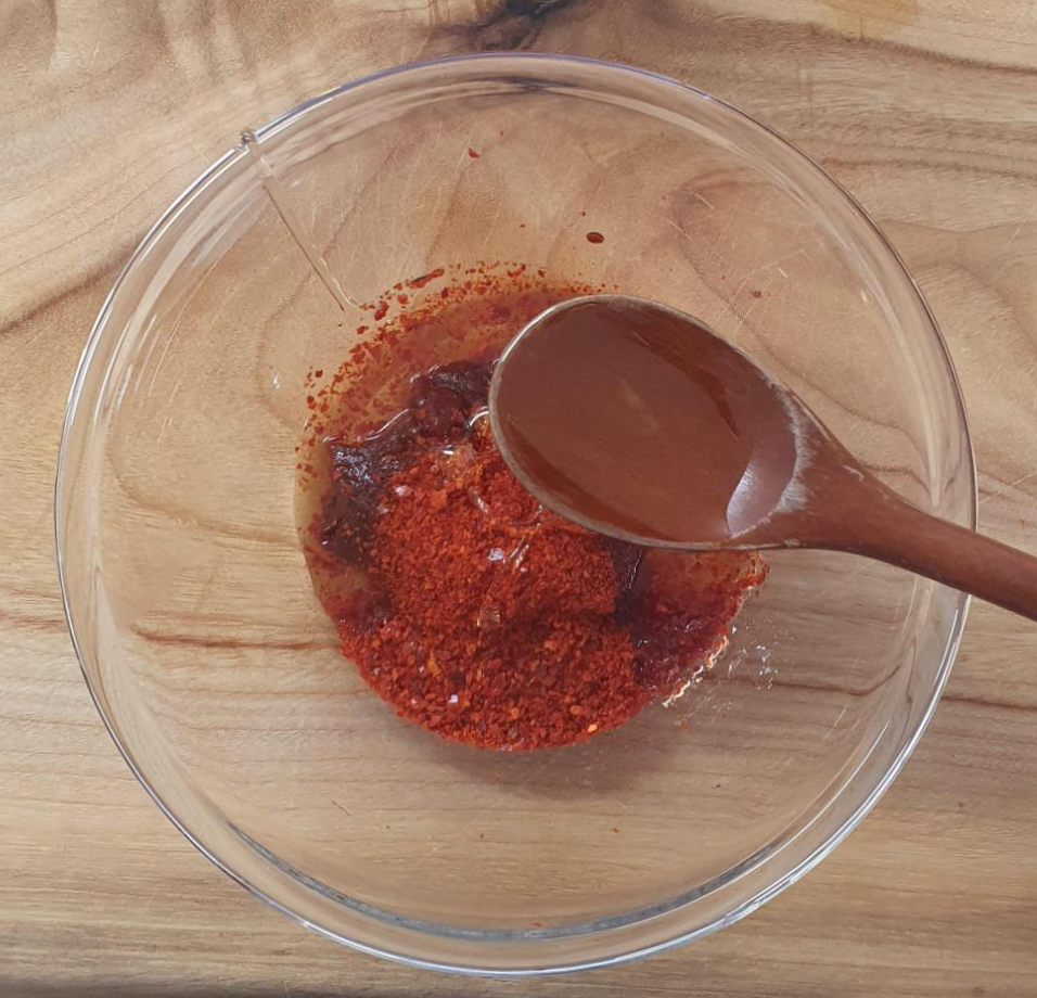 볼을 준비하셔서 고추장과 고춧가루를 넣어 주시길 바랍니다.