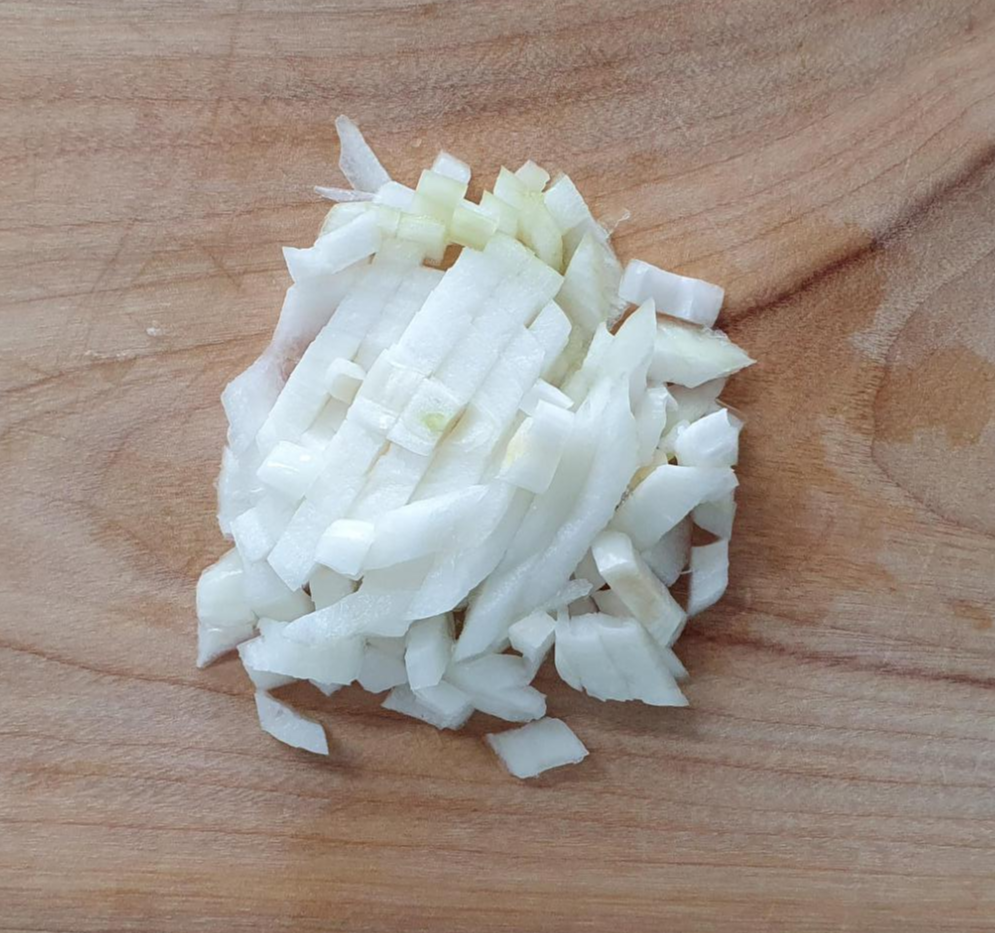 양파와 대파를 준비해 주셔야 하는데, 양파는 잘게 다져 주시면 좋겠습니다. 있는 듯 없는 듯하면서 양파의 단맛을 내줄 생각이에요.