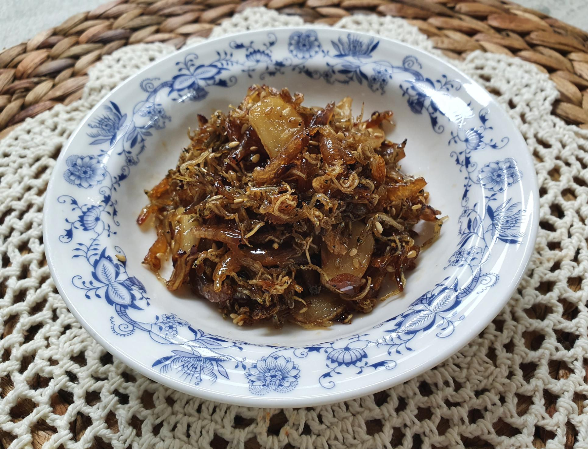 한국인 밥상 빠질 수 없는 절대지존 반찬, 아이가 좋아하는 반찬, 윤기가 좌르르 흐르는 멸치볶음 완성이네요.