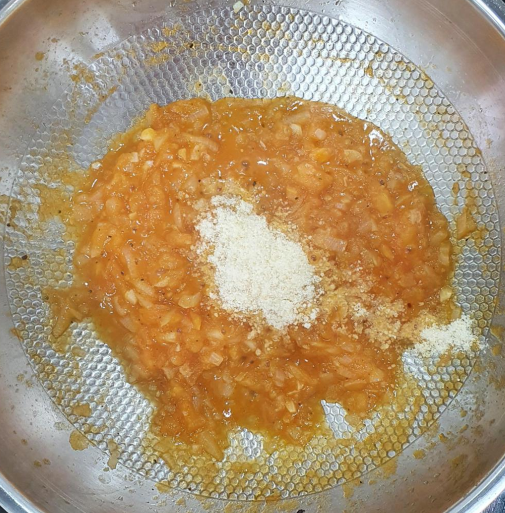 파마산 치즈 추가해 주세요. 파마산 치즈는 1스푼 이상 넣어 주시면 좋겠는데, 기호에 따라 다르기 때문에 원하는 만큼 넣어 주시면 좋겠습니다. ( 너무 많이 넣으면 간이 세진다는 점 참고해 주세요. )