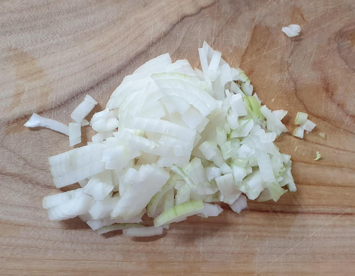 아이가 먹기 좋고, 잘 익는 크기의 양파를 준비해야 하는데요. 잘게 썰어서 준비해 주시면 좋겠습니다.