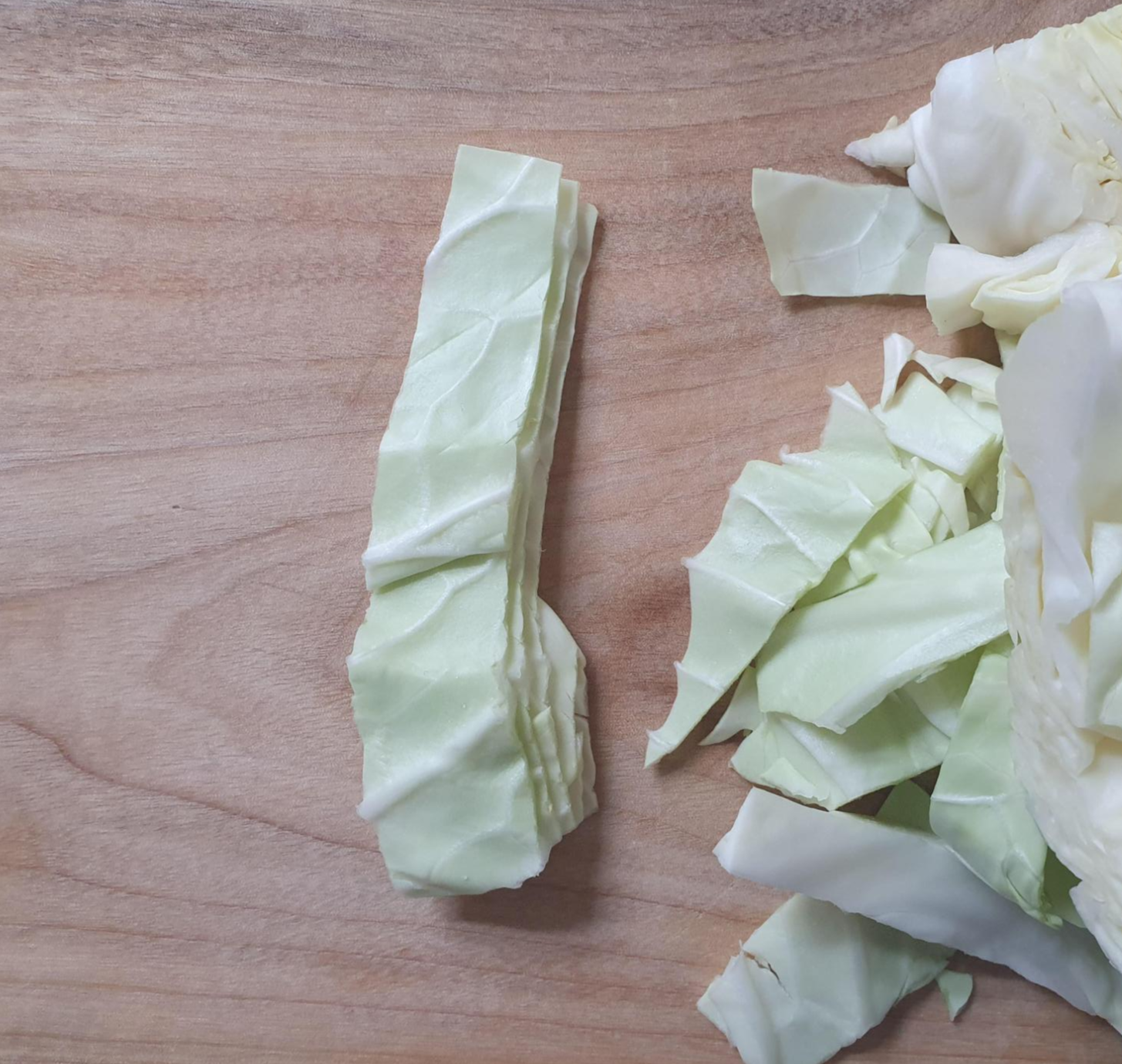 양배추를 썰어서 준비한 굵기가 잘 보이지 않으실 것 같아서 제가 썰어서 준비한 두께를 참고 삼아 올려보아요.