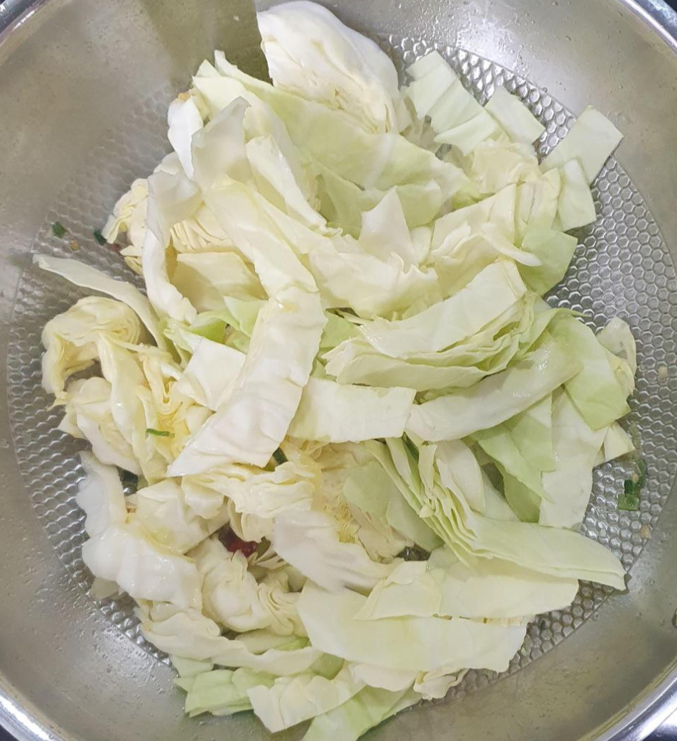 양배추를 삶아서 쌈으로 먹어도 맛있고, 채를 썰어서 샐러드를 만들어 먹어도 맛이 좋지만, 이렇게 볶아서 먹는 것도 양배추만의 매력을 충분히 느낄 수 있어요.