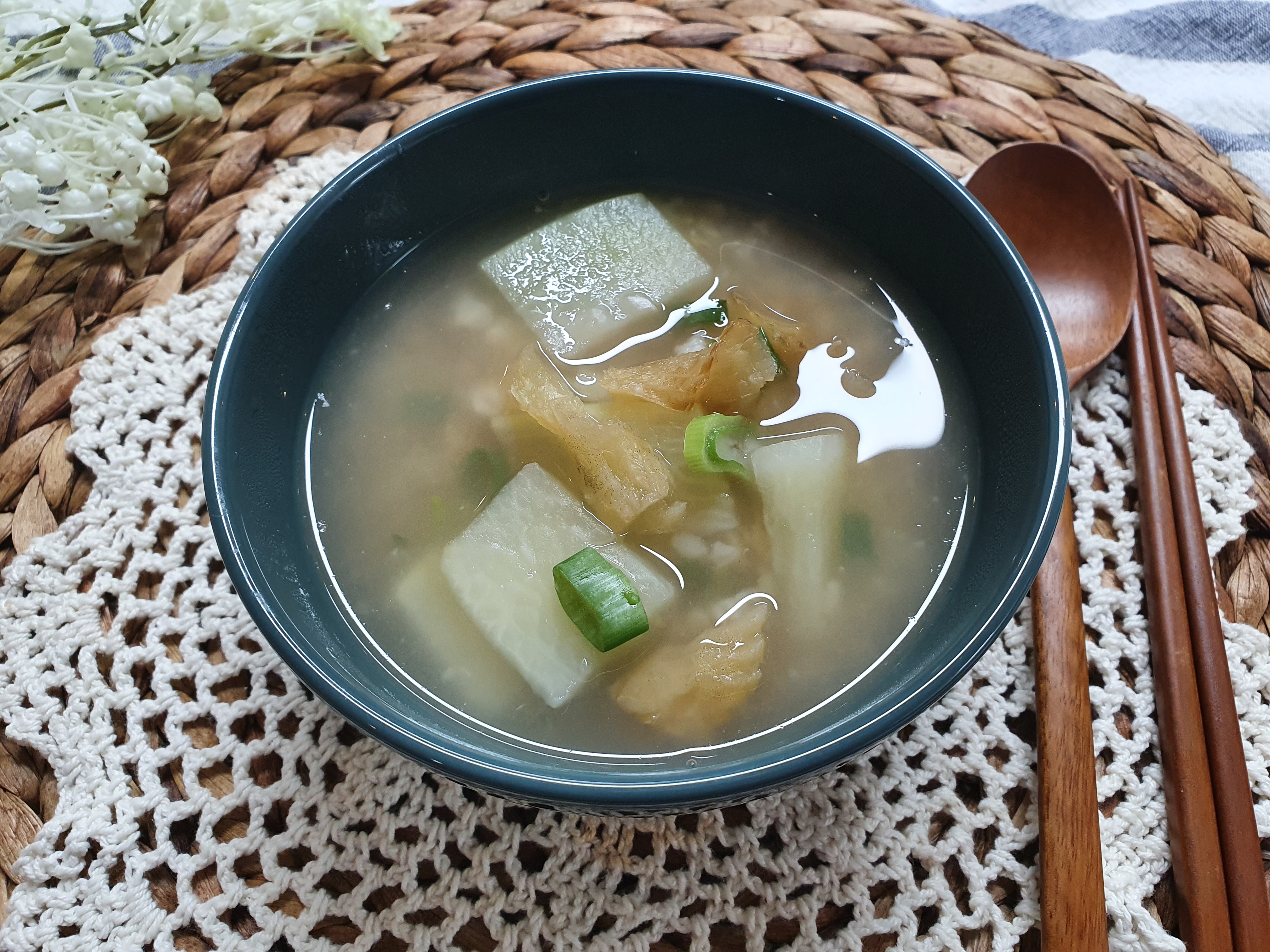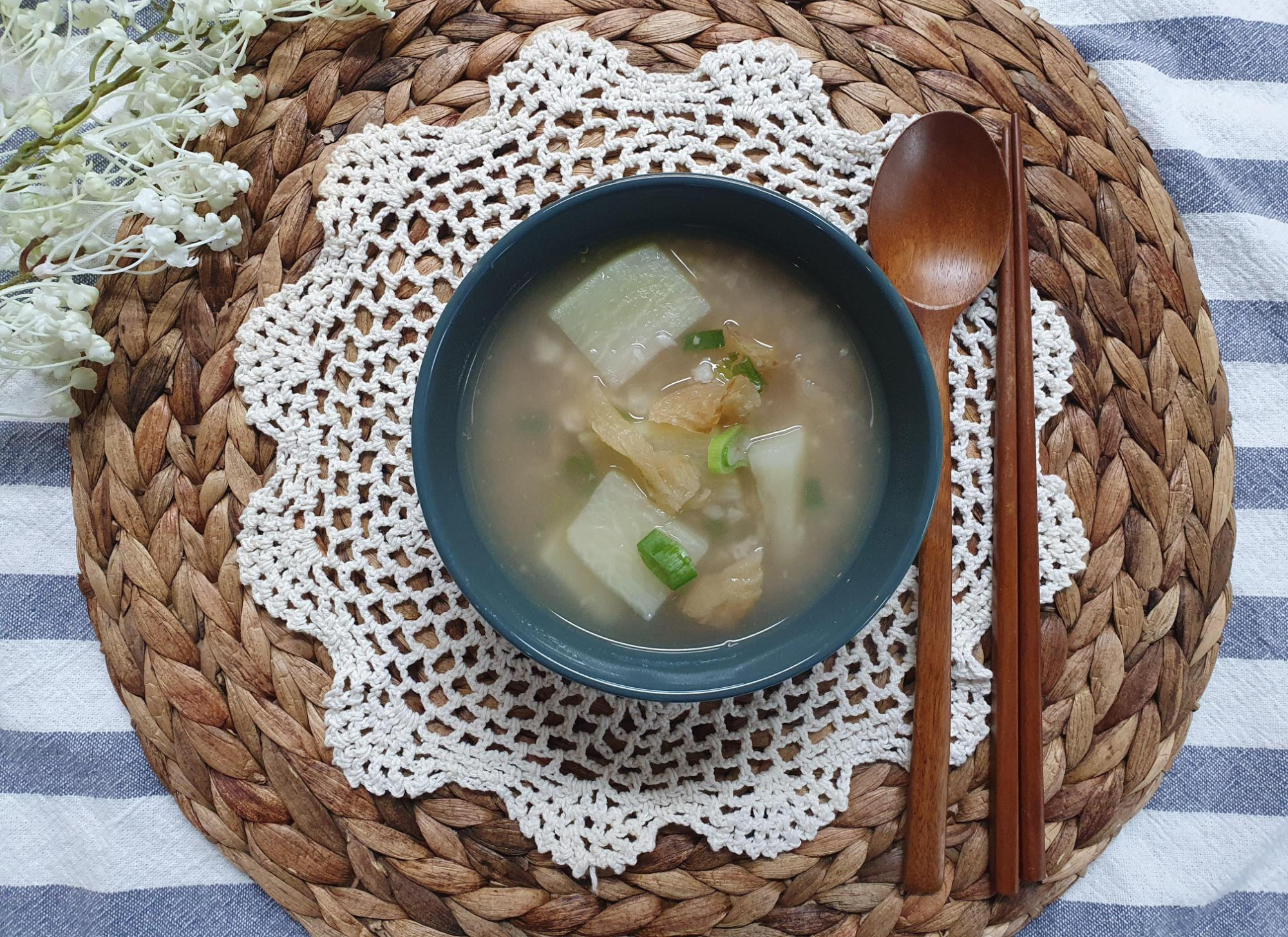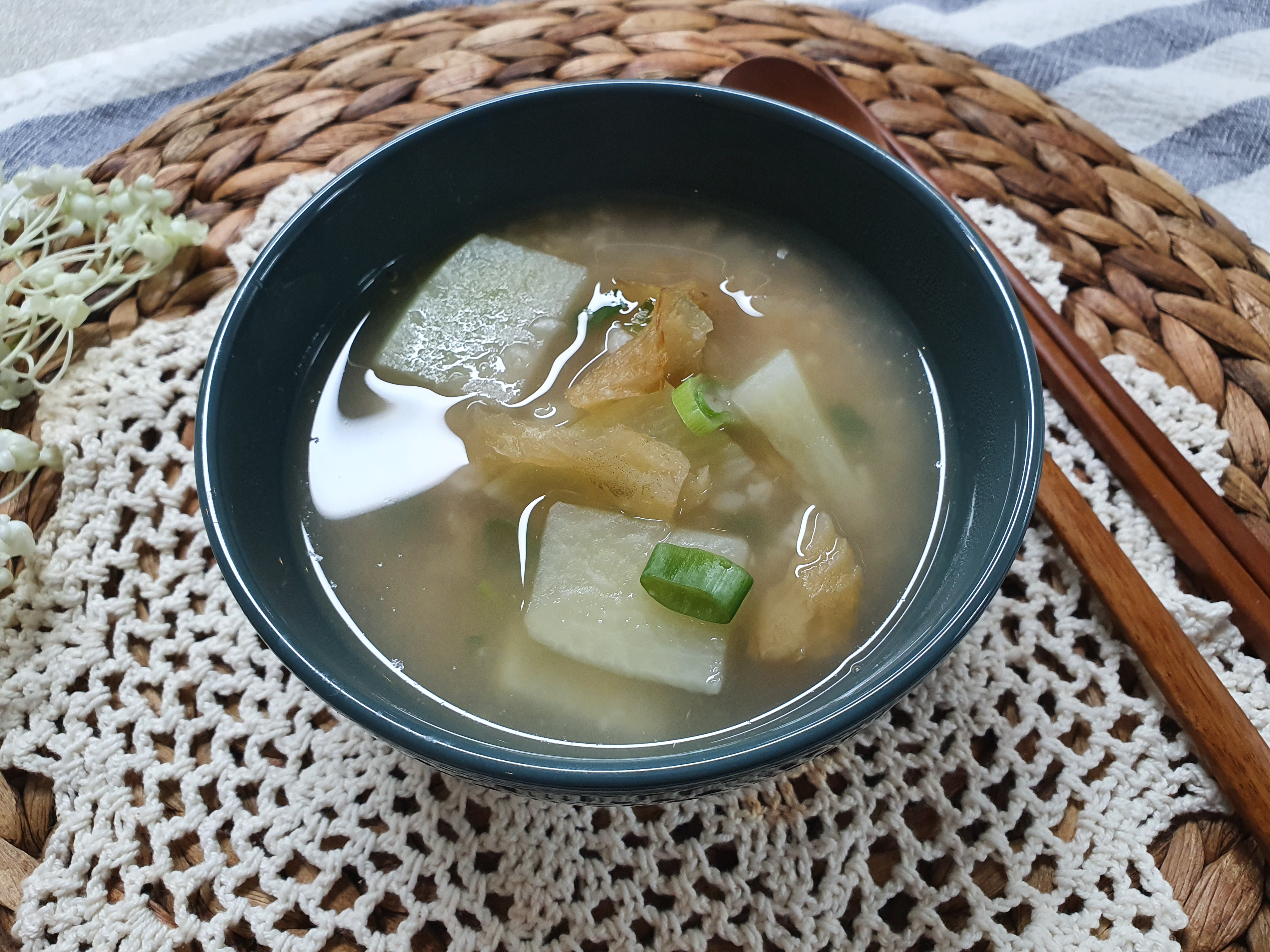 누룽지의 구수한 맛이 입안에 쫙 퍼지면서, 국간장과 참치액의 감칠맛이 받쳐주니 맛이 아주 좋네요.