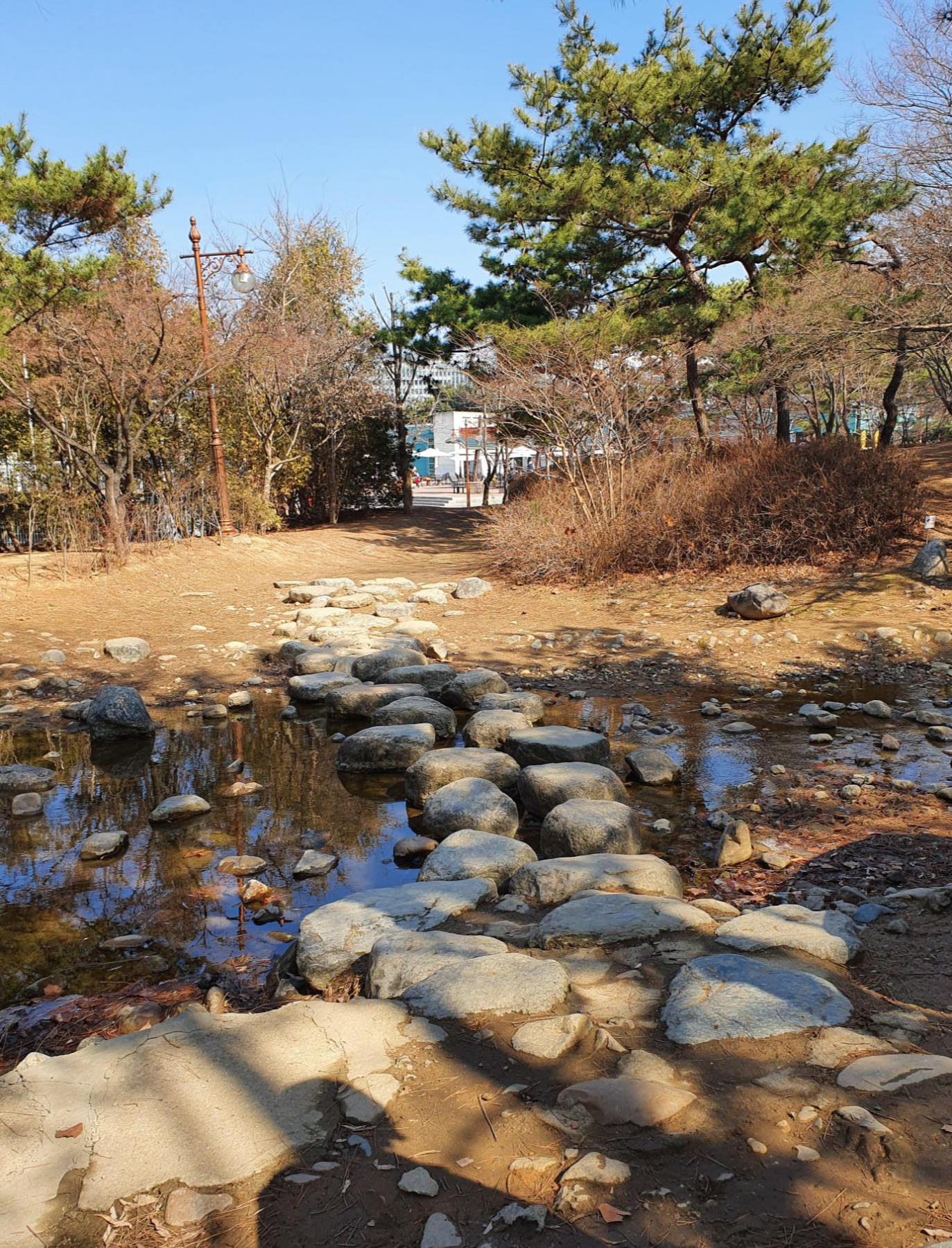 길 중간에 이쁜 개울가가 있어요.^^ 나무 인공적이지 않은 분위기가 너무 좋고 이쁩니다. 와이프님과 한참 서서 바라보았네요~