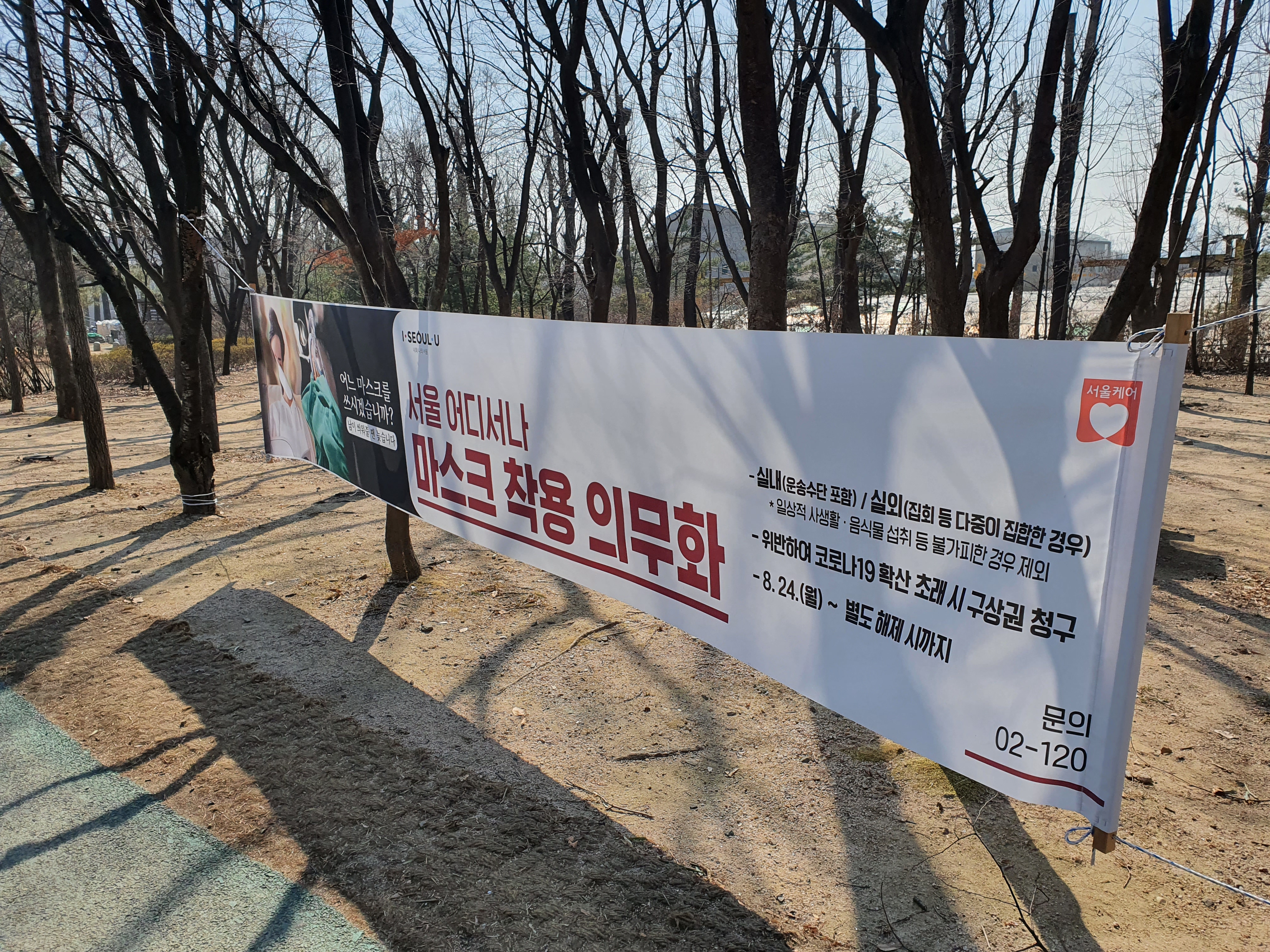 산책로 중간중간에는 마스크 착용 의무화라는 소개글이 엄청 많이 달려 있어요.