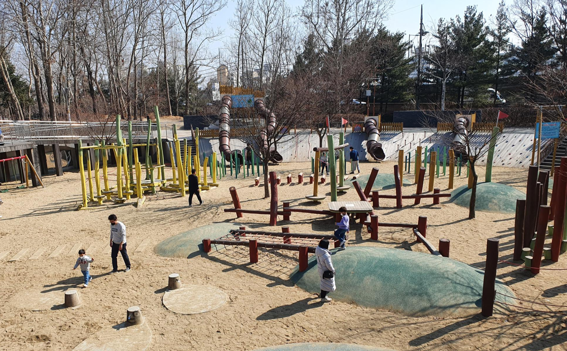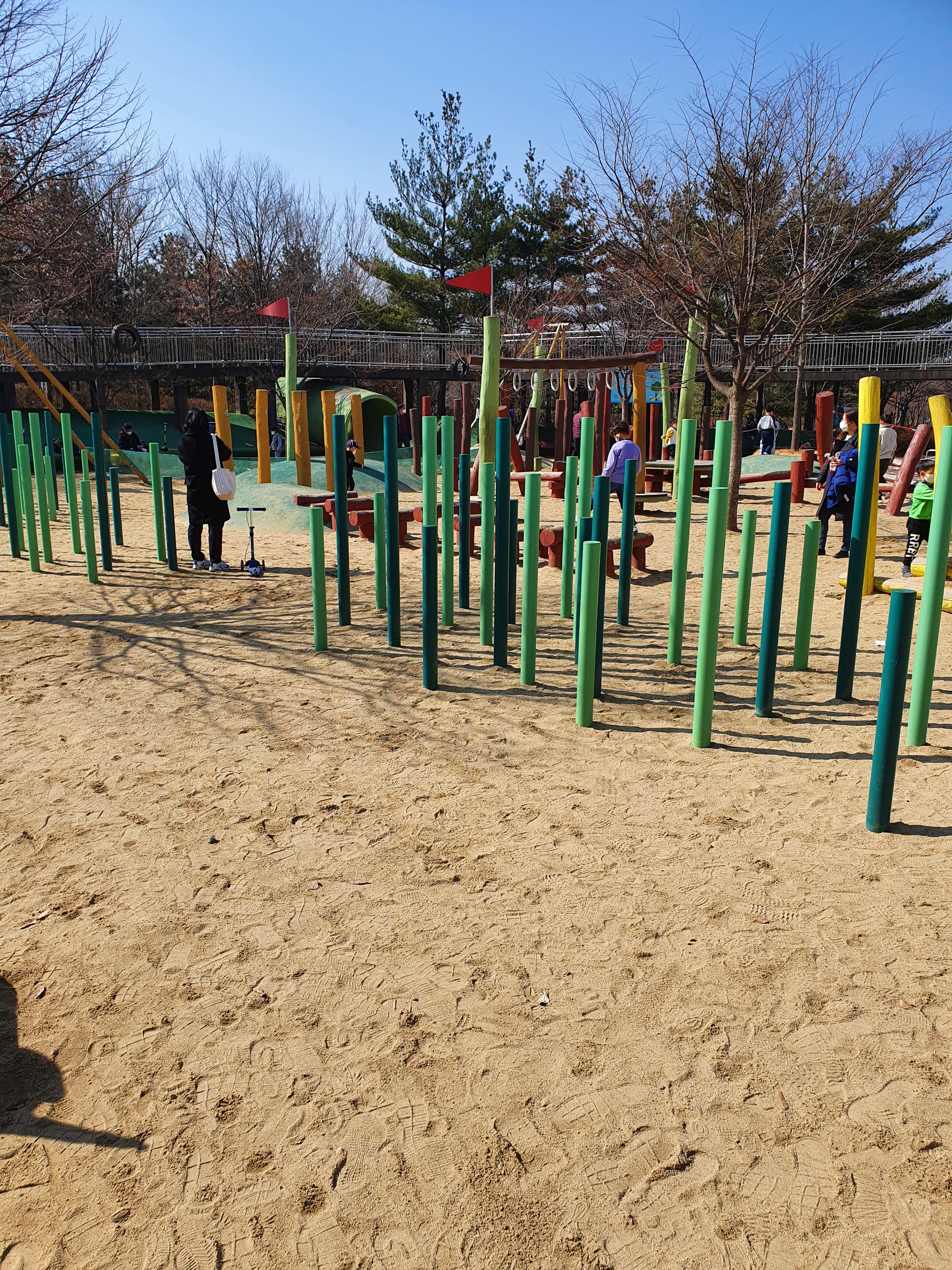 산책로를 천천히 걸으며 나무숲을 만긱하다보면 아이가 좋아하는 놀이터가 나오게 됩니다. 이름은 모험놀이터입니다.