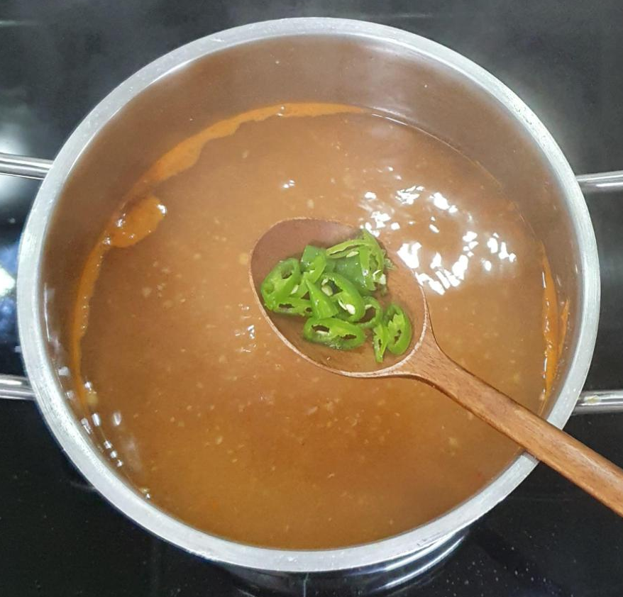 칼칼함을 많이 좋아하시는 분이라면 청양고추 1개를 다 썰어서 준비하셔도 괜찮을 것 같아요. 저는 적당한 칼칼함이 좋아서 반개만 사용했지만요.