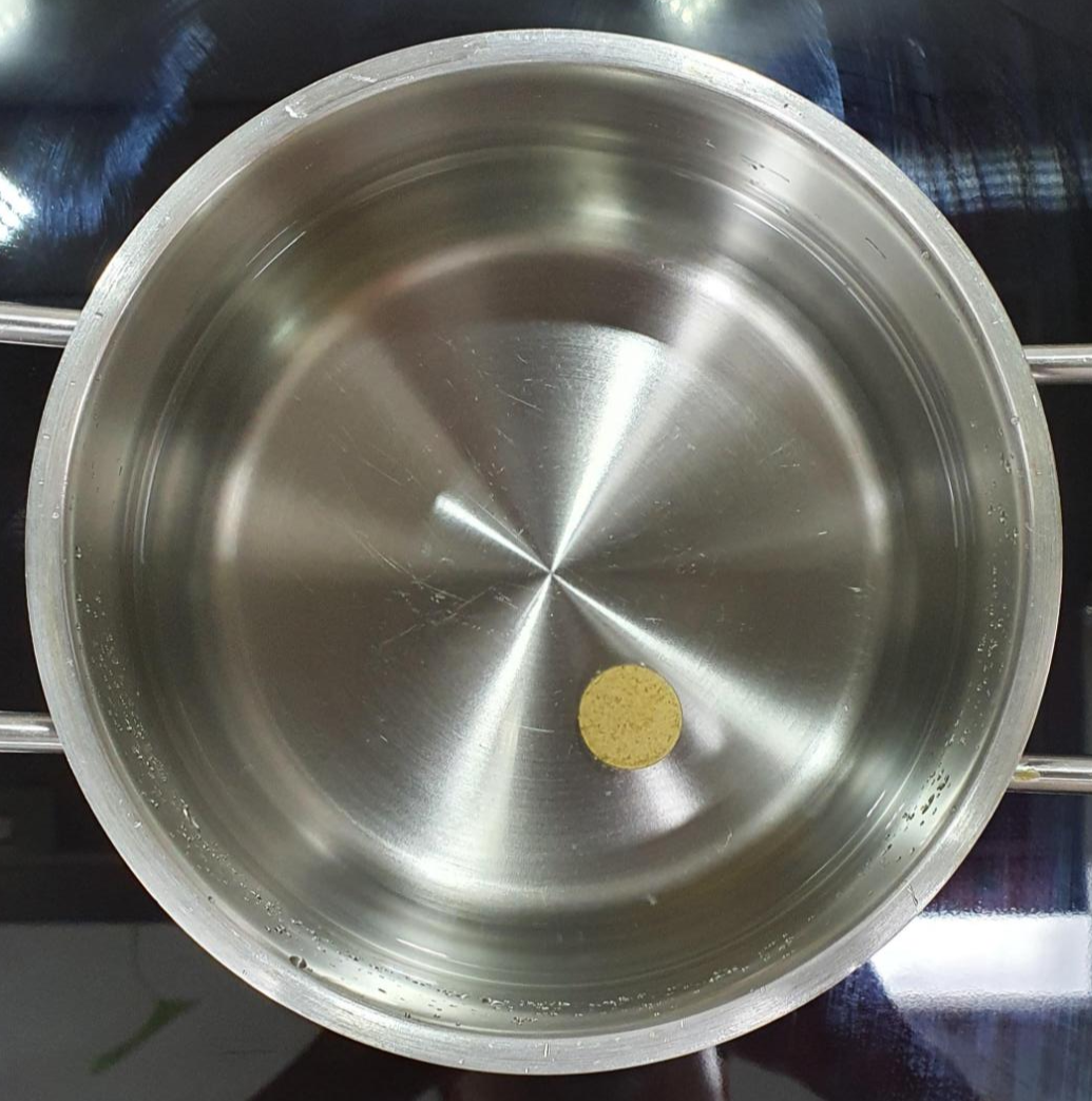 일반 물을 500ml 정도 받아서 코인을 그냥 넣었어요. 끓어오르니 정말 멸치육수 우린 색이 납니다.