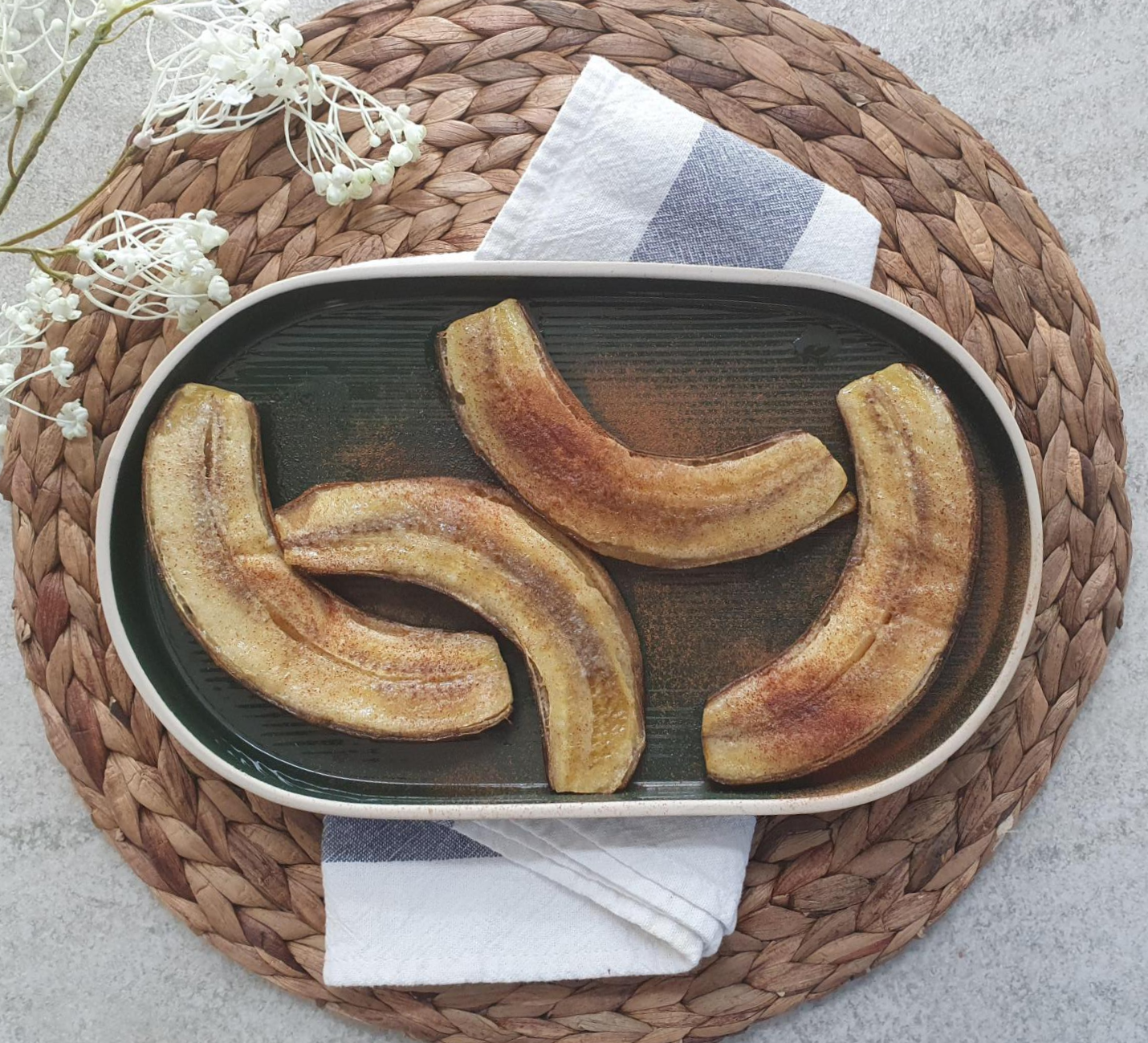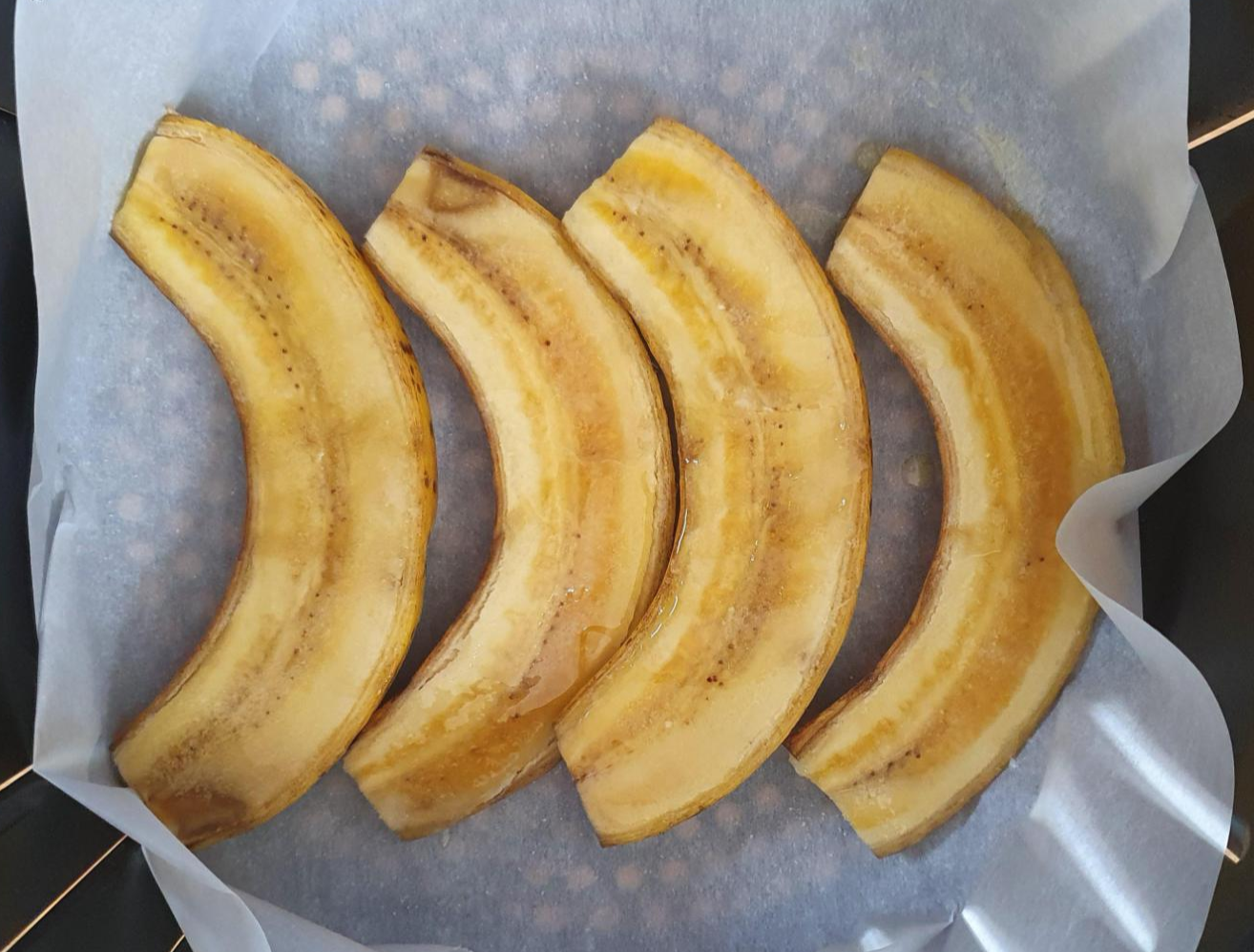 180도 에어 프라이기 온도를 맞춰 주시고, 약 10분 정도 진행했습니다. 버터와 설탕이 바나나 속으로 잘 스며들게 되네요.