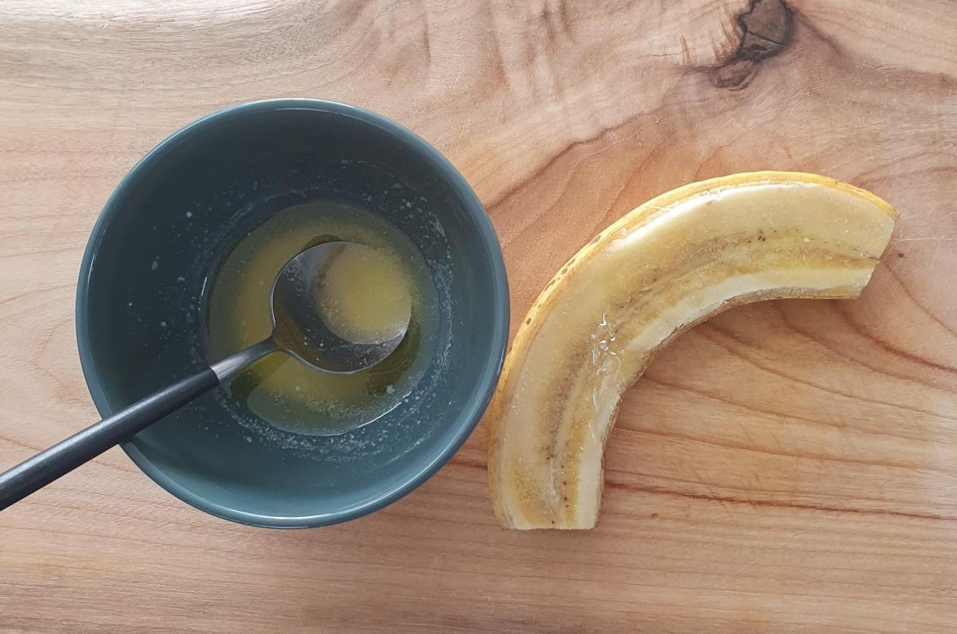 수저를 이용해서 버터를 적당량 바나나위에 펴 발라 주시면 되겠습니다. 아주 간단하게 바를 수 있어요. ^^