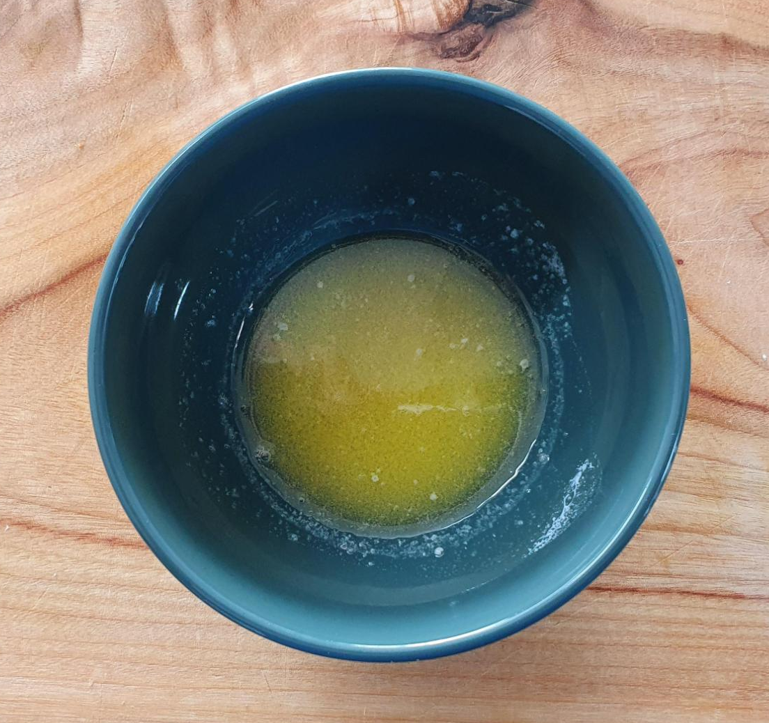잘라서 준비한 바나나 위에 버터를 올려줄 거예요. 버터는 잘라서 올리는 방법보다 녹여서 바나나 위에 싹 발라주는 편이 좋을 것 같아, 전자레인지에 녹여준 다음 바나나 위에 발라줄 준비를 합니다.