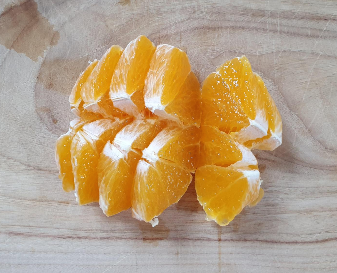한라봉은 1개를 사용할 거예요. 한라봉 반개는 드레싱 소스로, 나머지 한라봉 반개는 샐러드와 같이 먹을 수 있도록 손질할 것입니다.