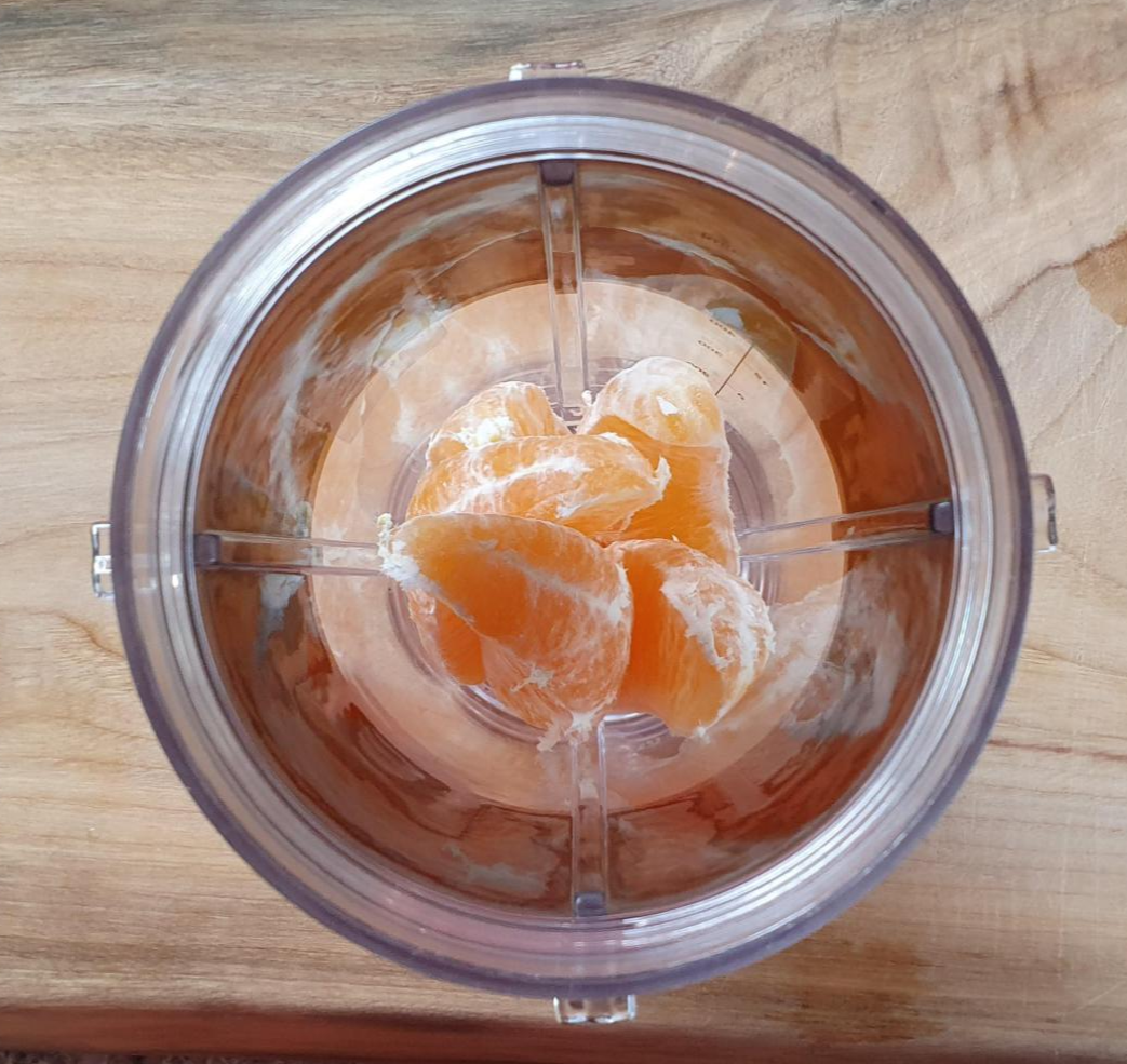 드레싱을 준비해야 하는 한라봉 반개는 믹서기에 갈아 준비해 줄꺼에요. 집에서 사용하시는 믹서기 또는 핸드블렌더를 이용해서 한라봉을 갈아서 준비해 주시면 좋겠습니다.