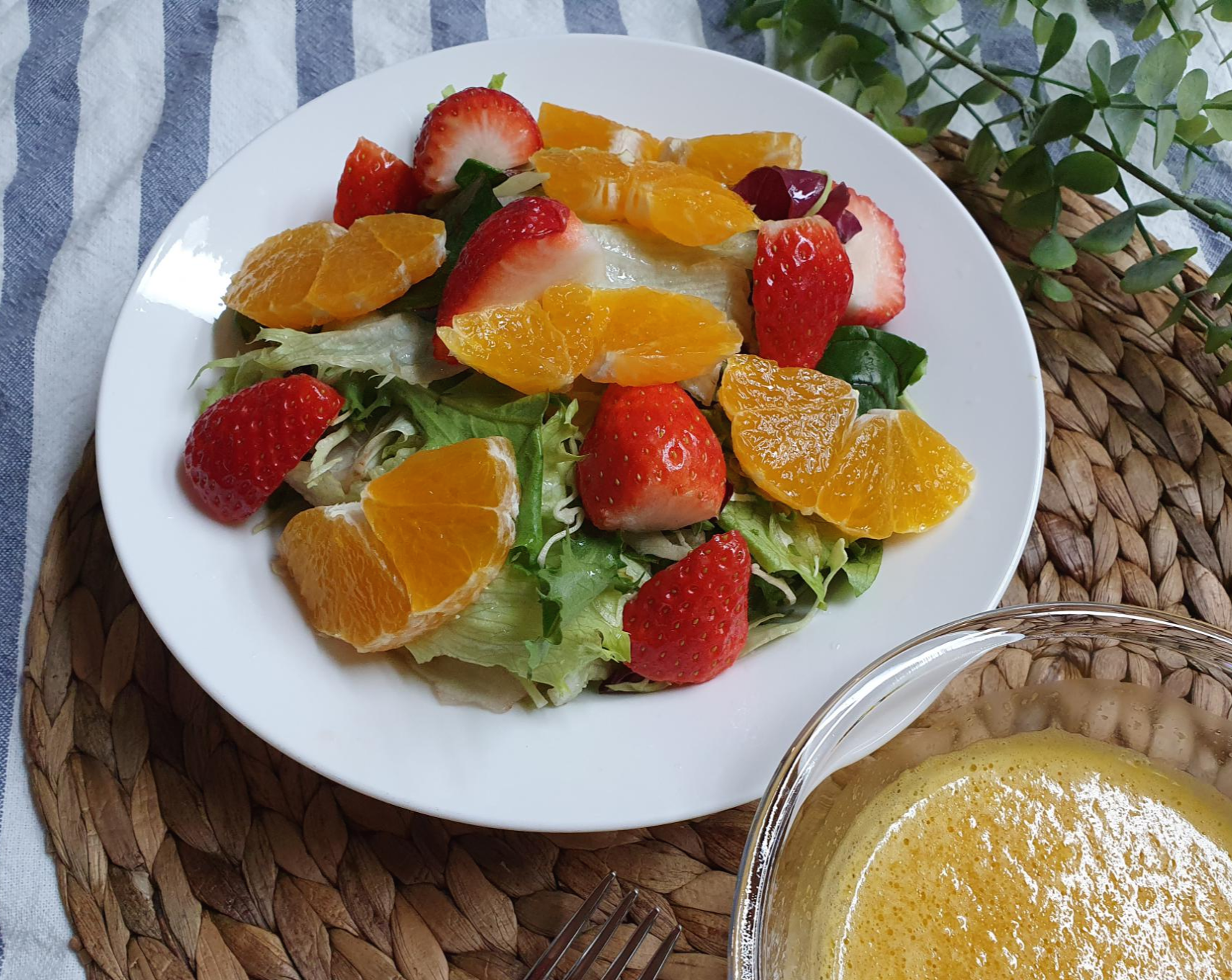 한라봉의 색감과 딸기의 색감이 너무 좋습니다. 드레싱 마저 이쁘게 색이 만들어져 먹고 싶다는 생각이 바로 들 정도네요.