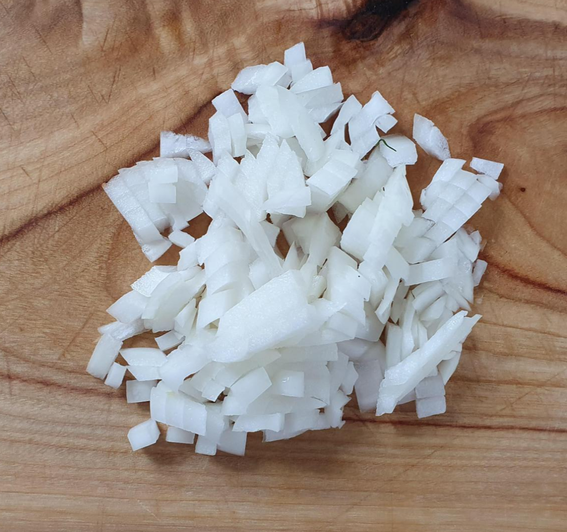 다음으로 양파를 손질해야 하는데요. 양파는 잘게 다져서 준비합니다. 약 1/4개 정도 사용할 꺼에요. 기호에 따라 추가하여주시면 되겠습니다.