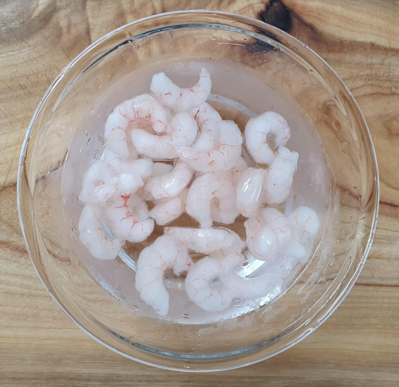 그리고 칵테일새우 냉동을 사용하는데요. 냉동으로 되어있기 때문에 물에 담가서 해동을 한 후에 사용할 것입니다.