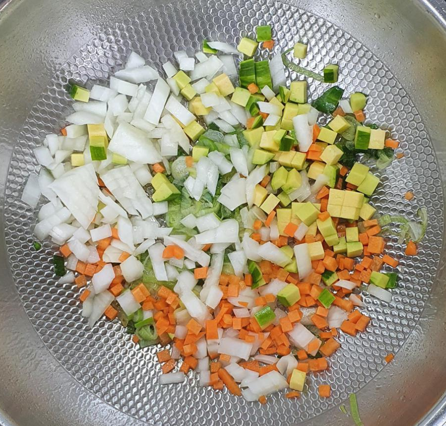 양파 및 당근과 비슷한 크기로 호박도 준비해 주시면 좋겠네요.