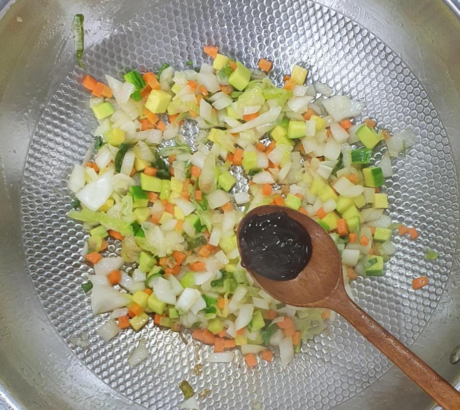 새우는 볶기 시작하면 아주 금방 익고, 오래익히다보면 약간 찔긴 식감이 되니 야채들보다 늦게 넣어 주었습니다. 참고해 주세요.